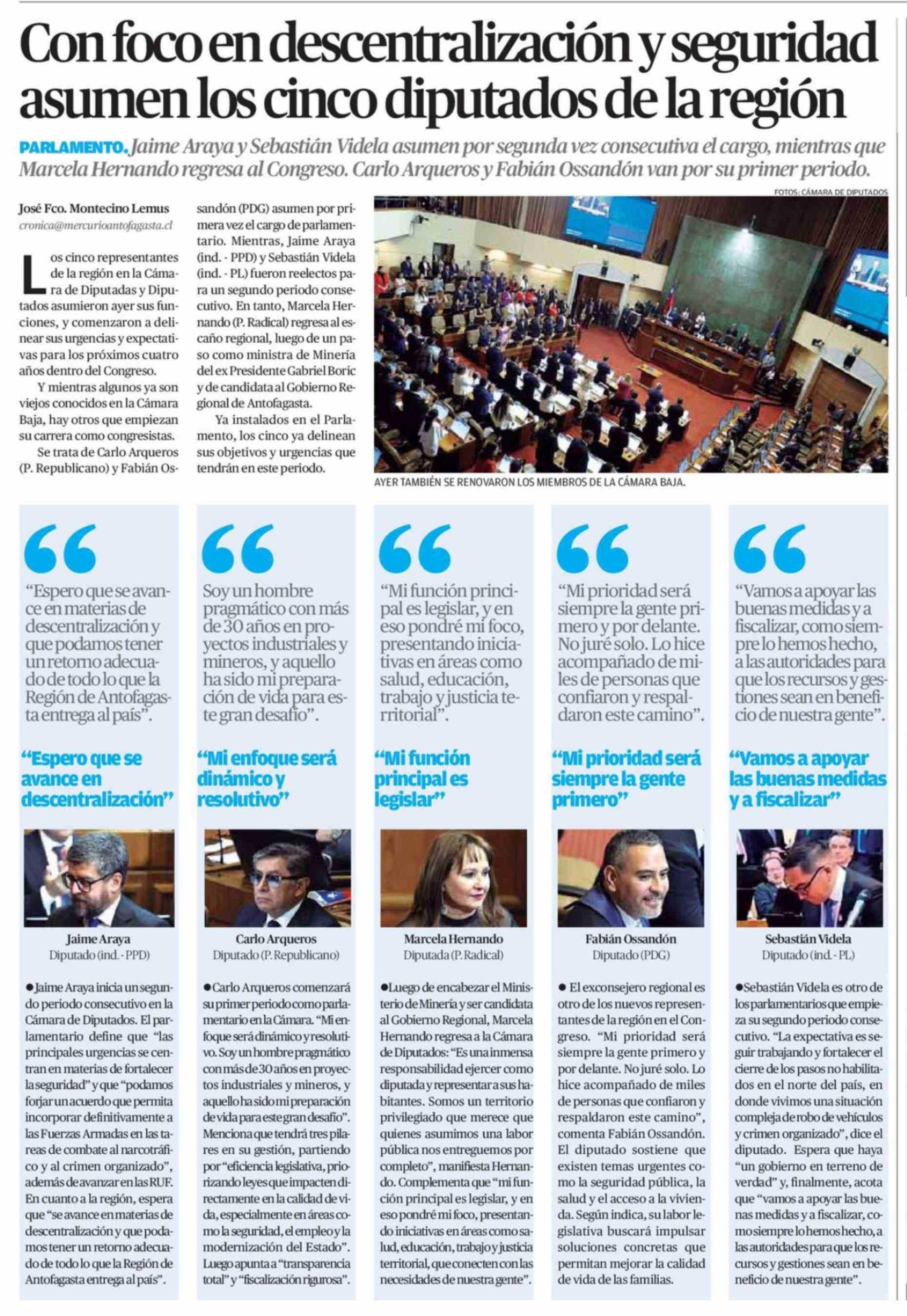 Título: Con foco en descentralización y seguridad asumen los cinco diputados de la región
