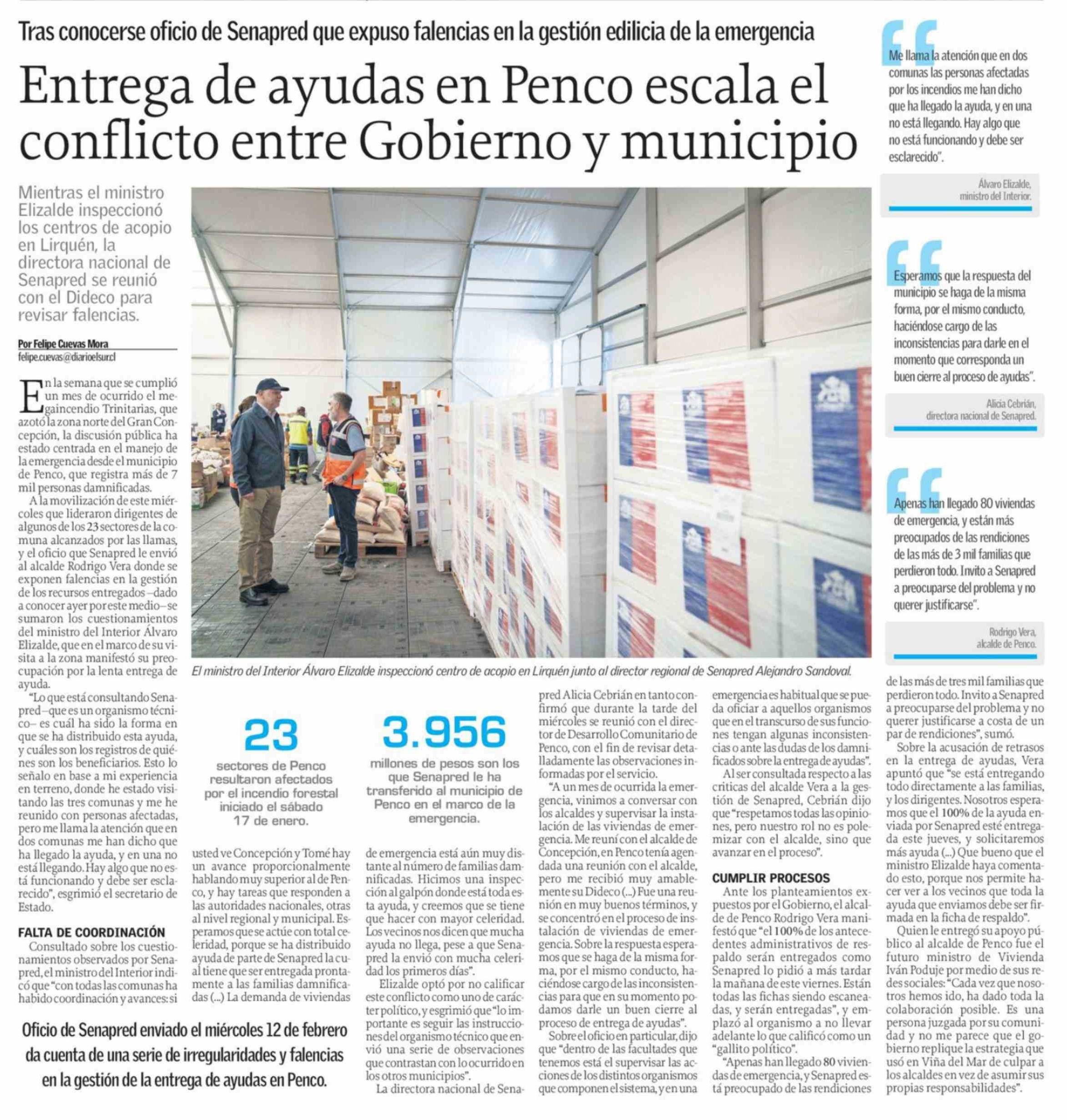 Entrega de ayudas en Penco escala el conflicto entre Gobierno y municipio