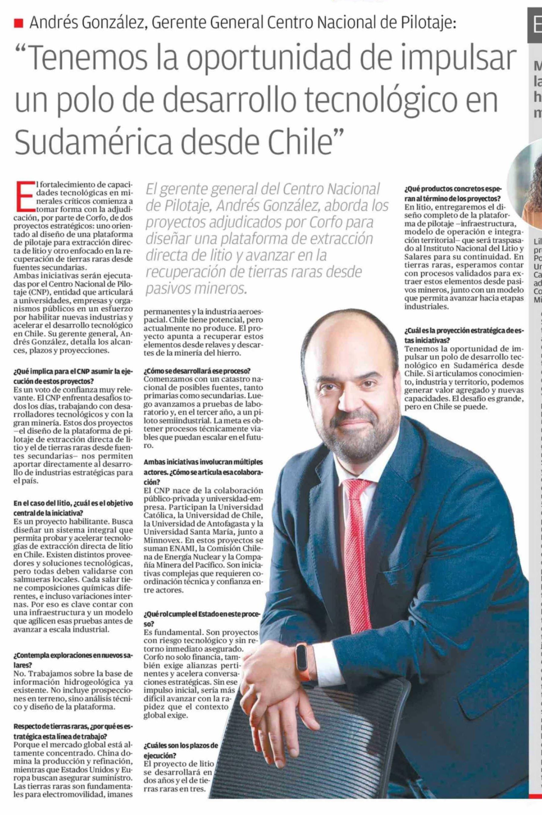 | Título: | "Tenemos la oportunidad de impulsar un polo de desarrollo tecnológico en Sudamérica desde Chile" |