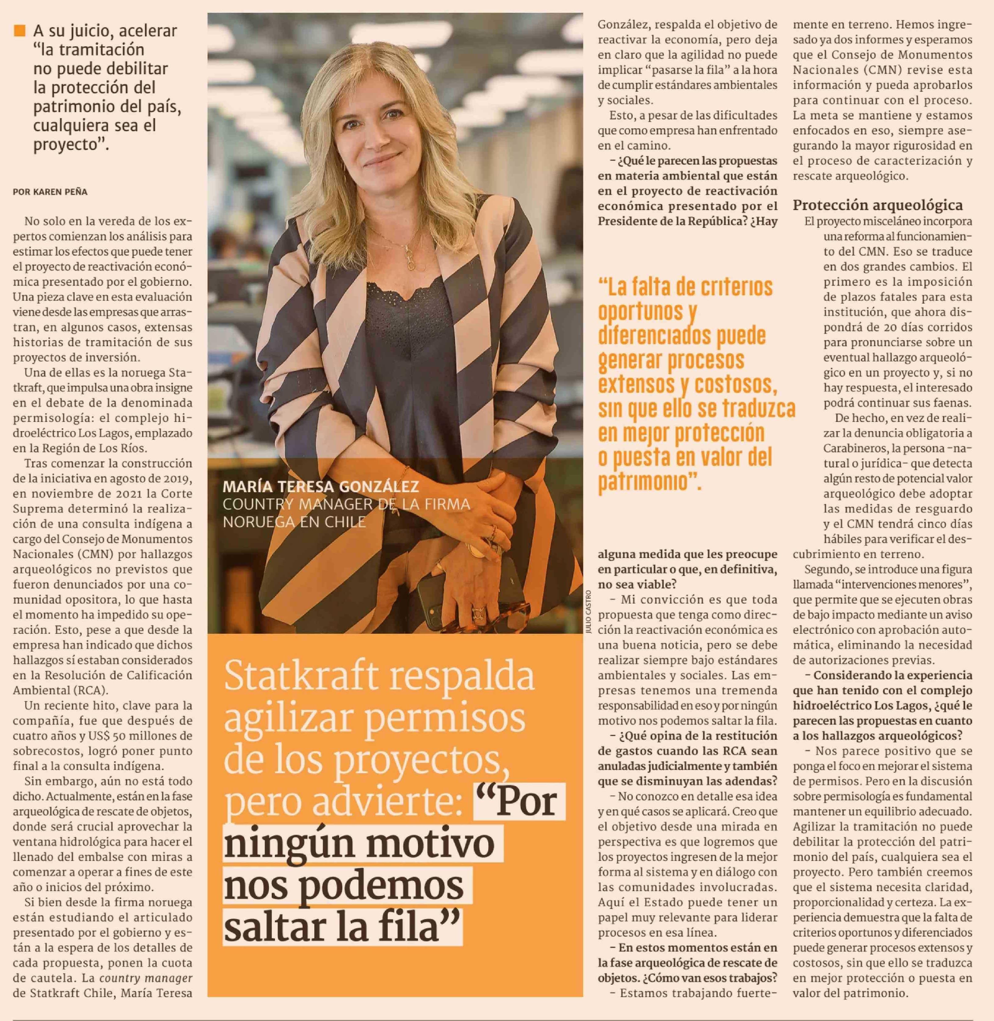 Statkraft respalda agilizar permisos de los proyectos, pero advierte: "Por ningún motivo nos podemos saltar la fila"