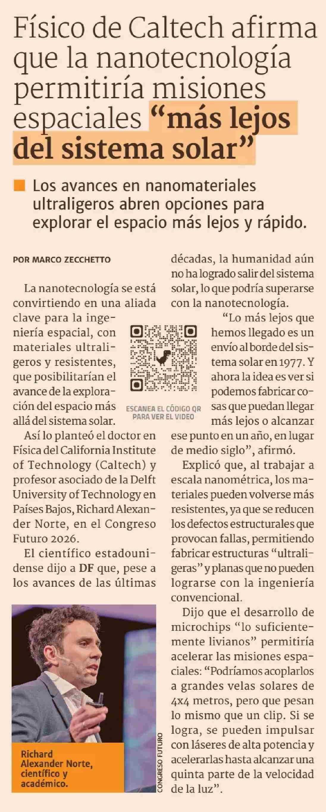 Físico de Caltech afirma que la nanotecnología permitiría misiones espaciales "más lejos del sistema solar"