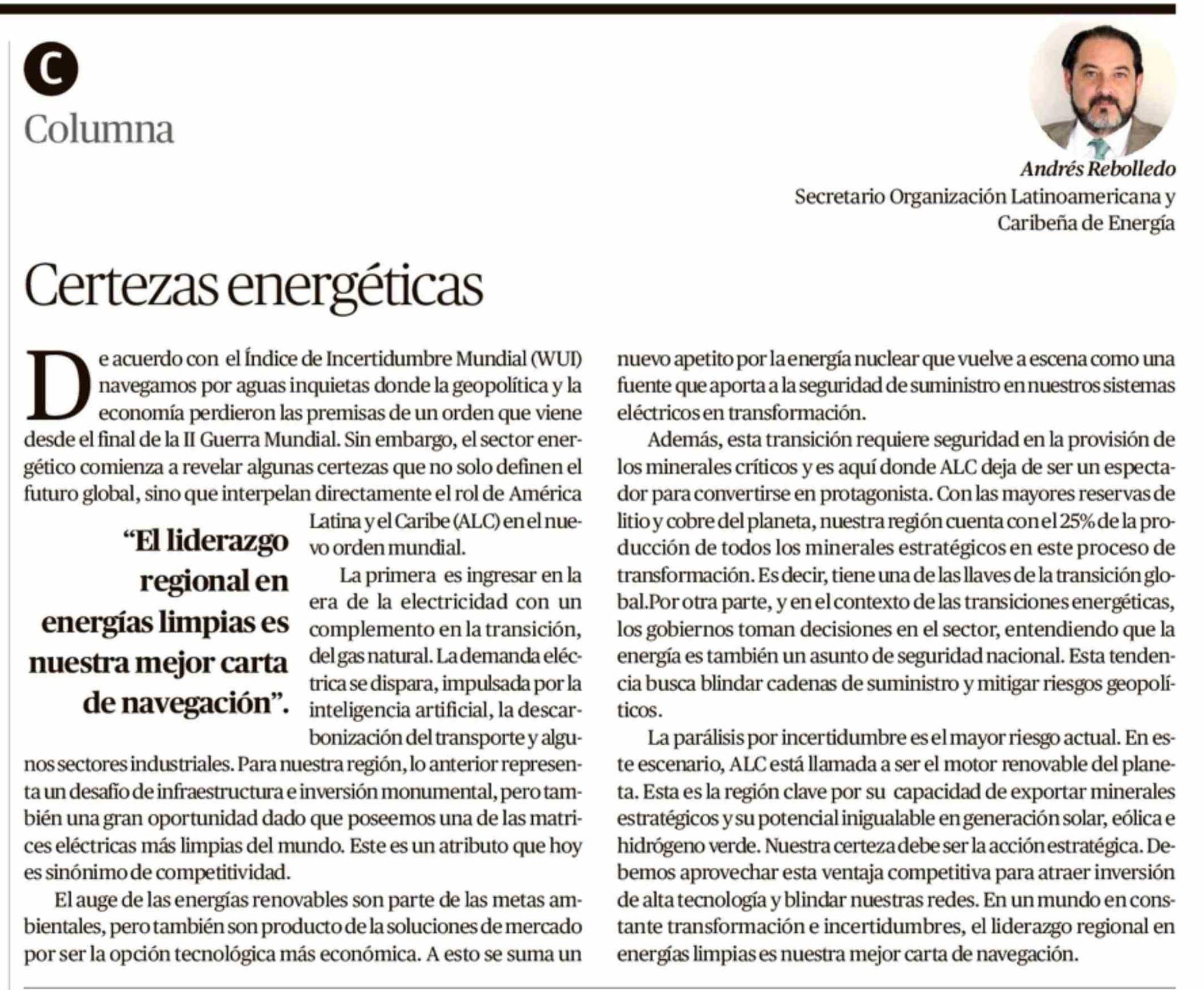 Columnas de Opinión: Certezas energéticas