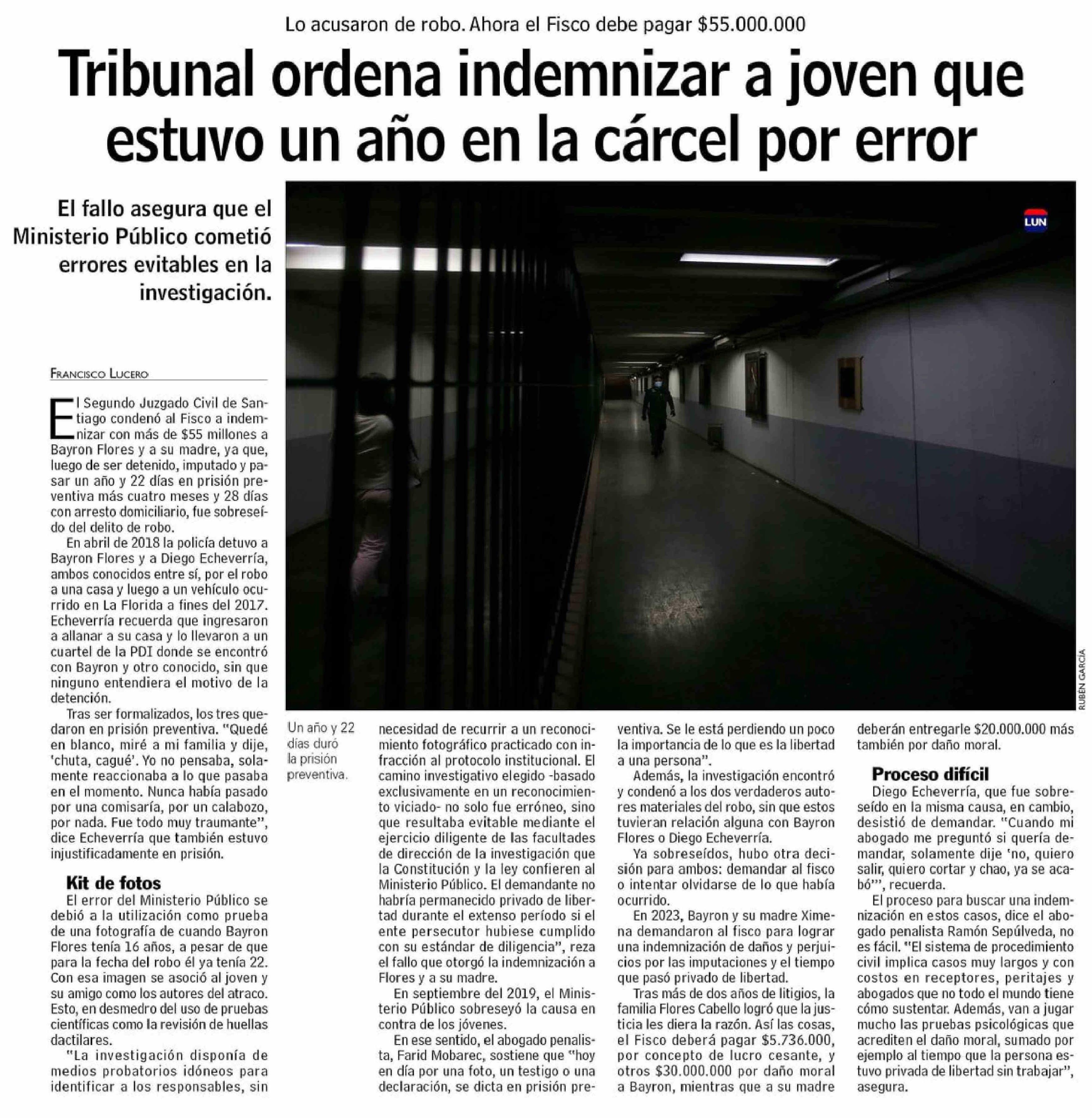 Tribunal ordena indemnizar a joven que estuvo un año en la cárcel por error