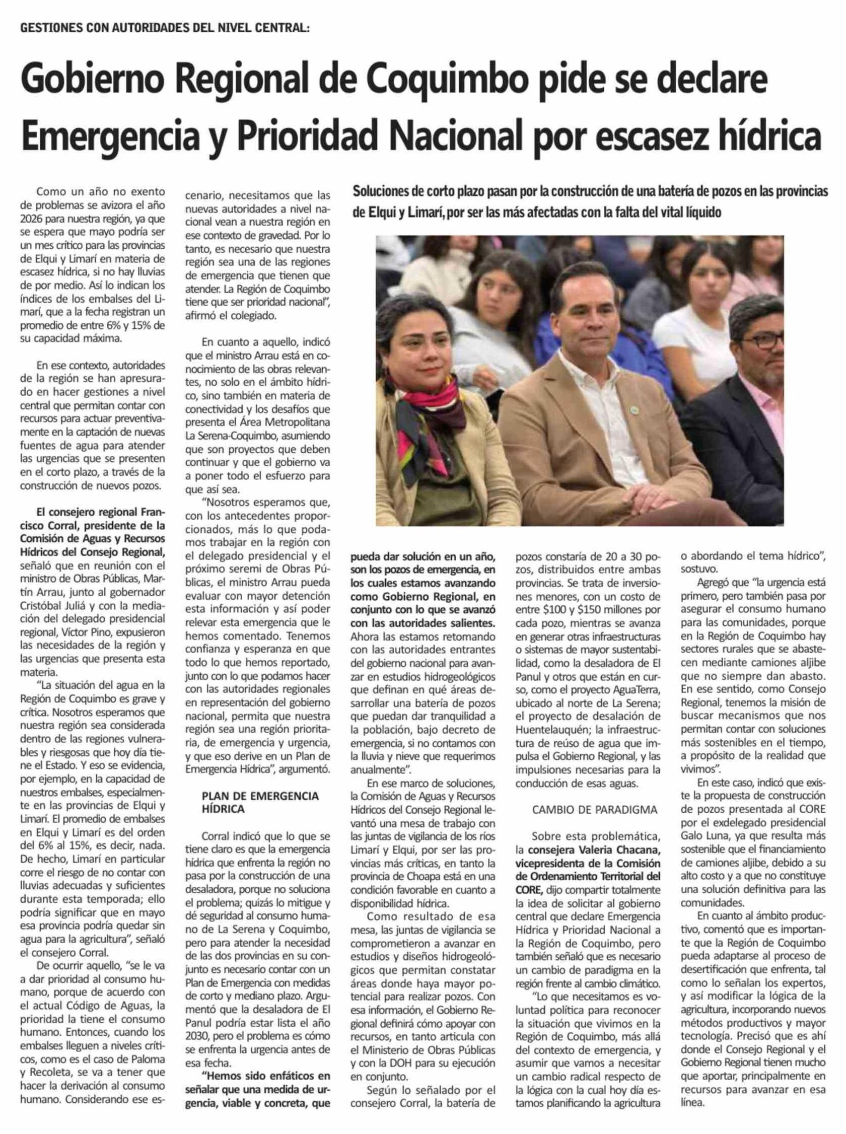 Gobierno Regional de Coquimbo pide se declare Emergencia y Prioridad Nacional por escasez hídrica