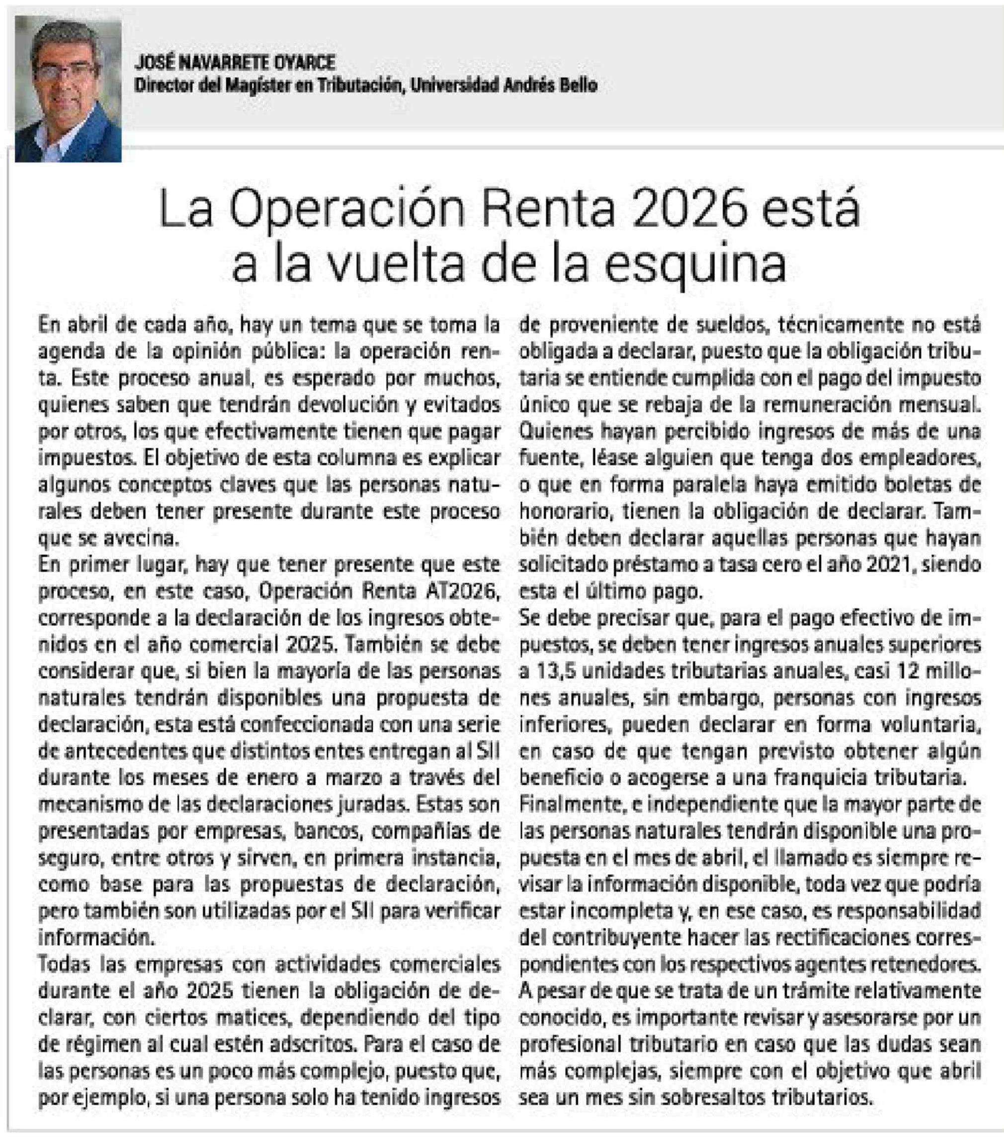 Columnas de Opinión: La Operación Renta 2026 está a la vuelta de la esquina