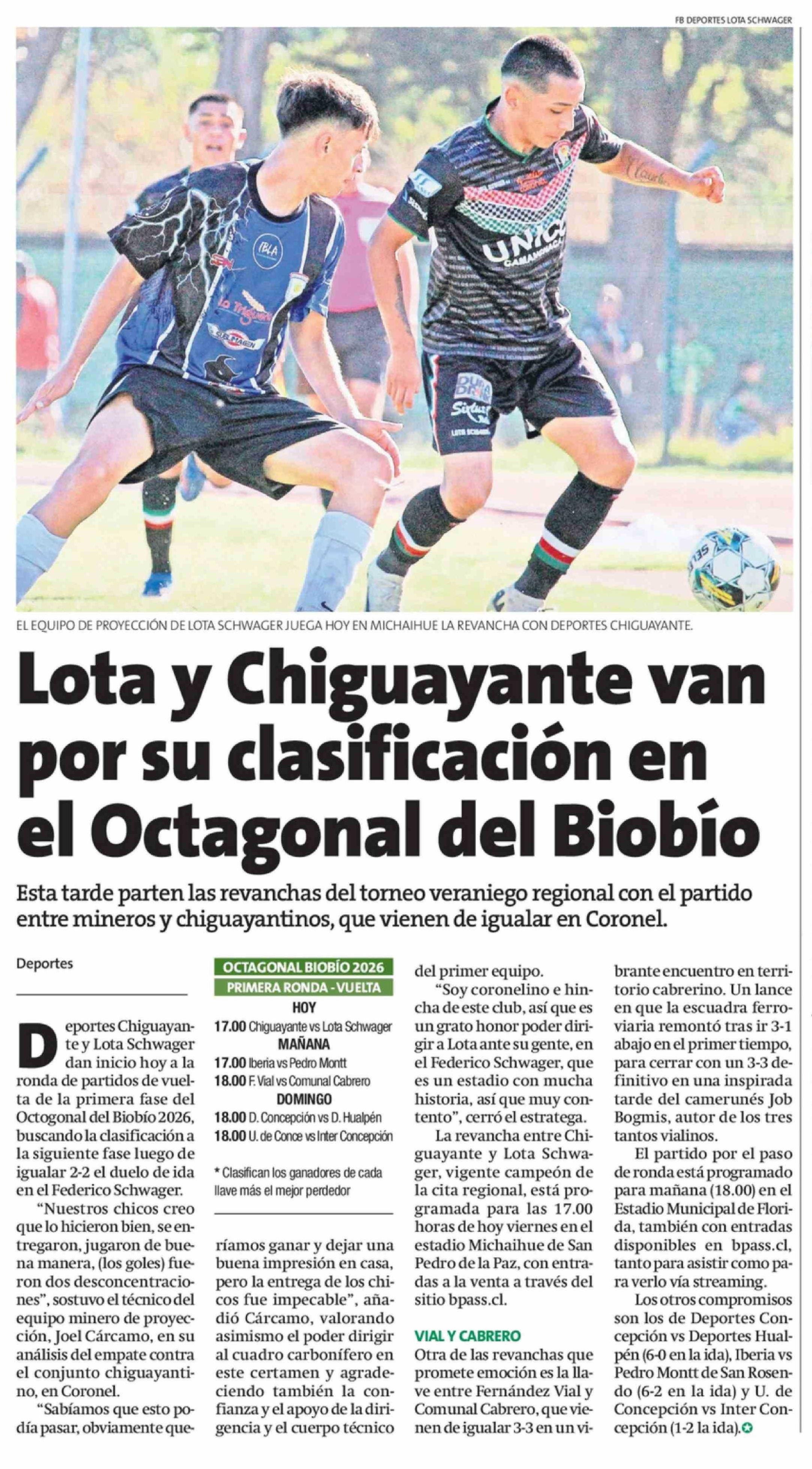 Lota y Chiguayante van por su clasificación en el Octagonal del Biobio