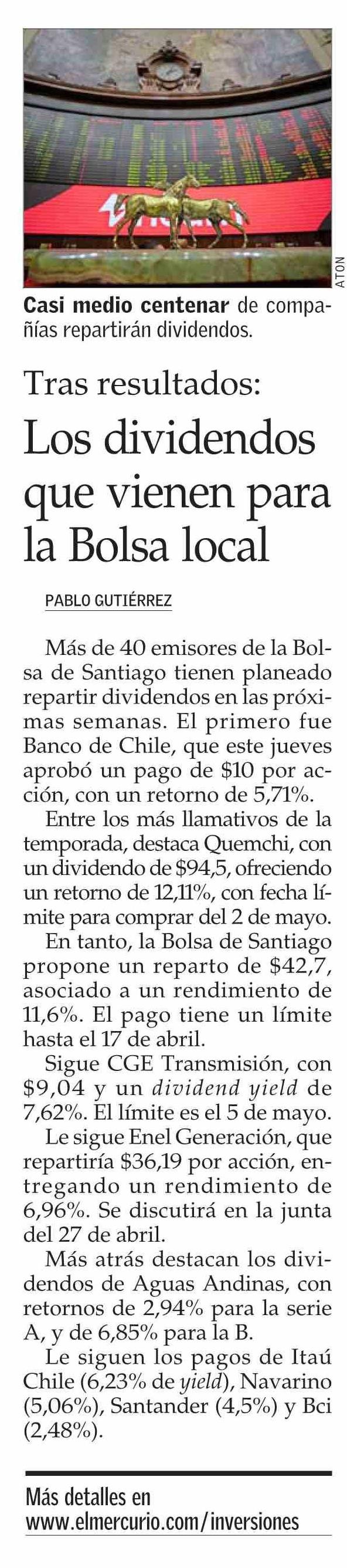 Los dividendos que vienen para la Bolsa local