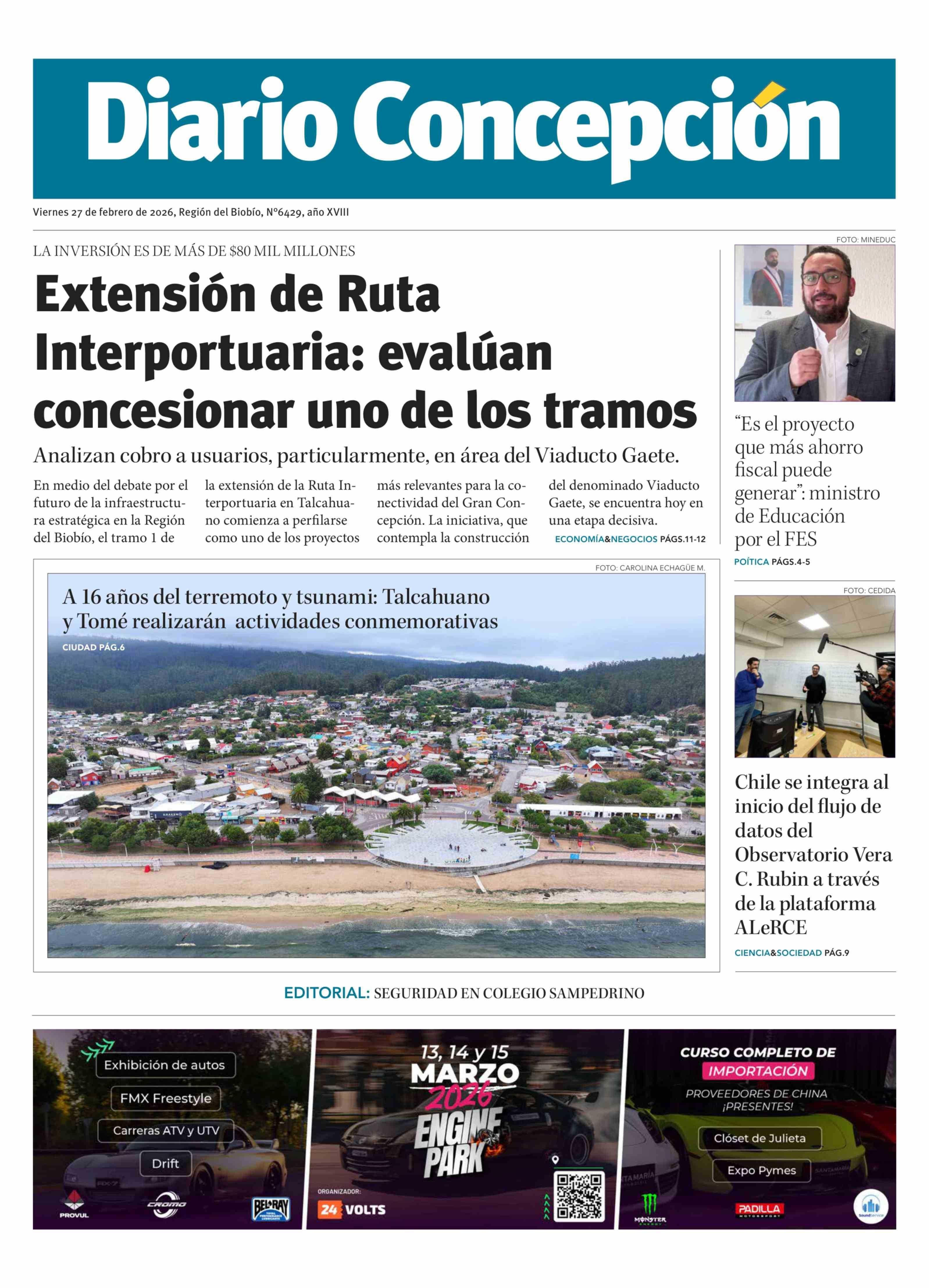PORTADA DIARIO CONCEPCIÓN CHILE
