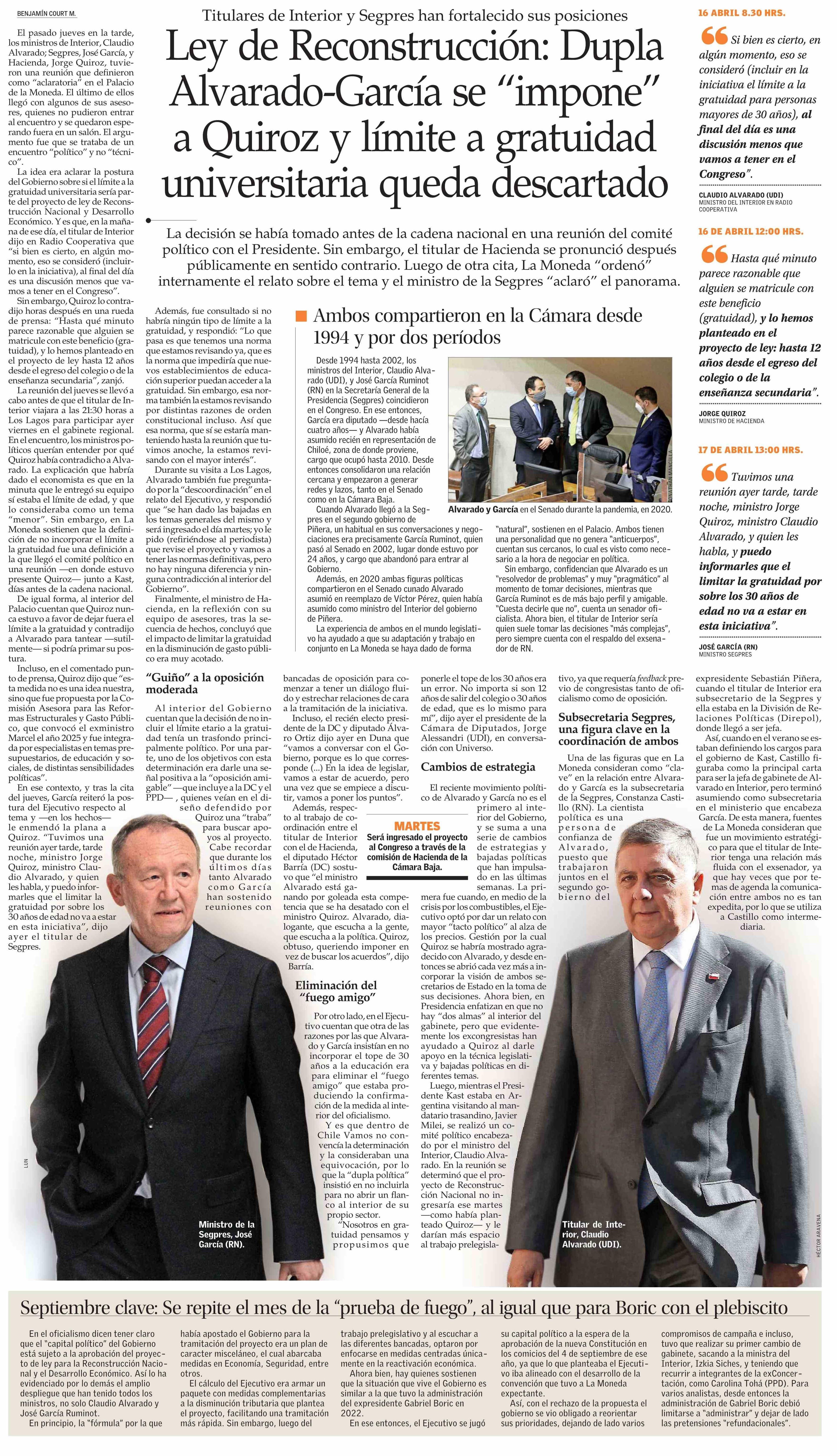 Ley de Reconstrucción: Dupla Alvarado-García se “impone” a Quiroz y límite a gratuidad universitaria queda descartado