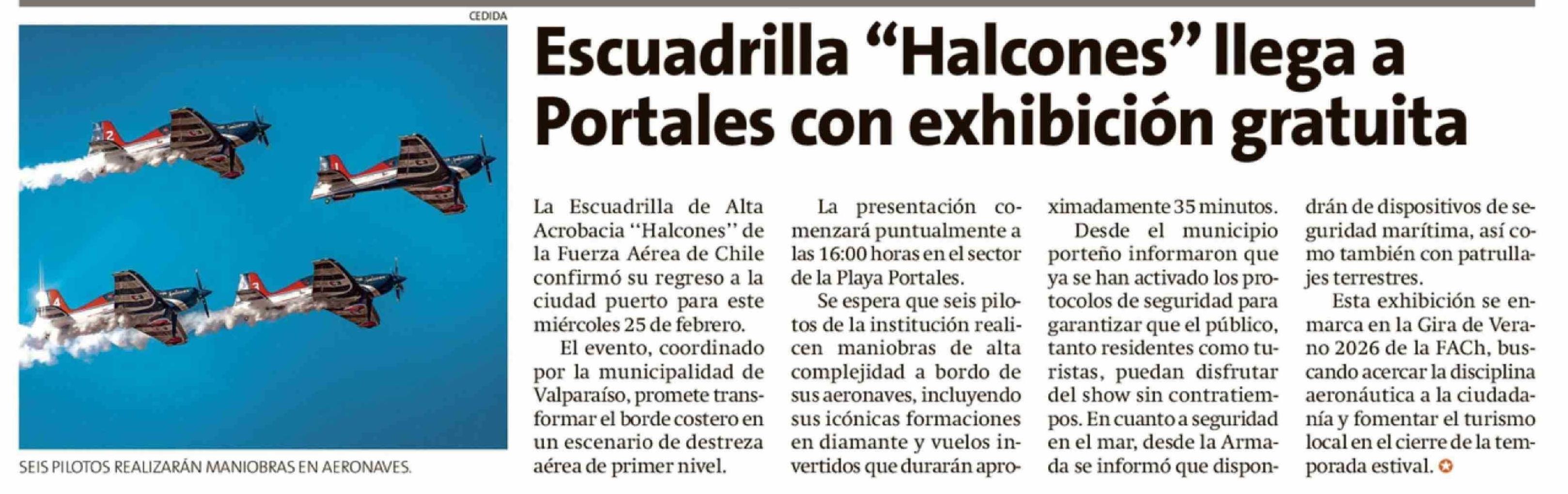 Escuadrilla "Halcones" llega a Portales con exhibición gratuita