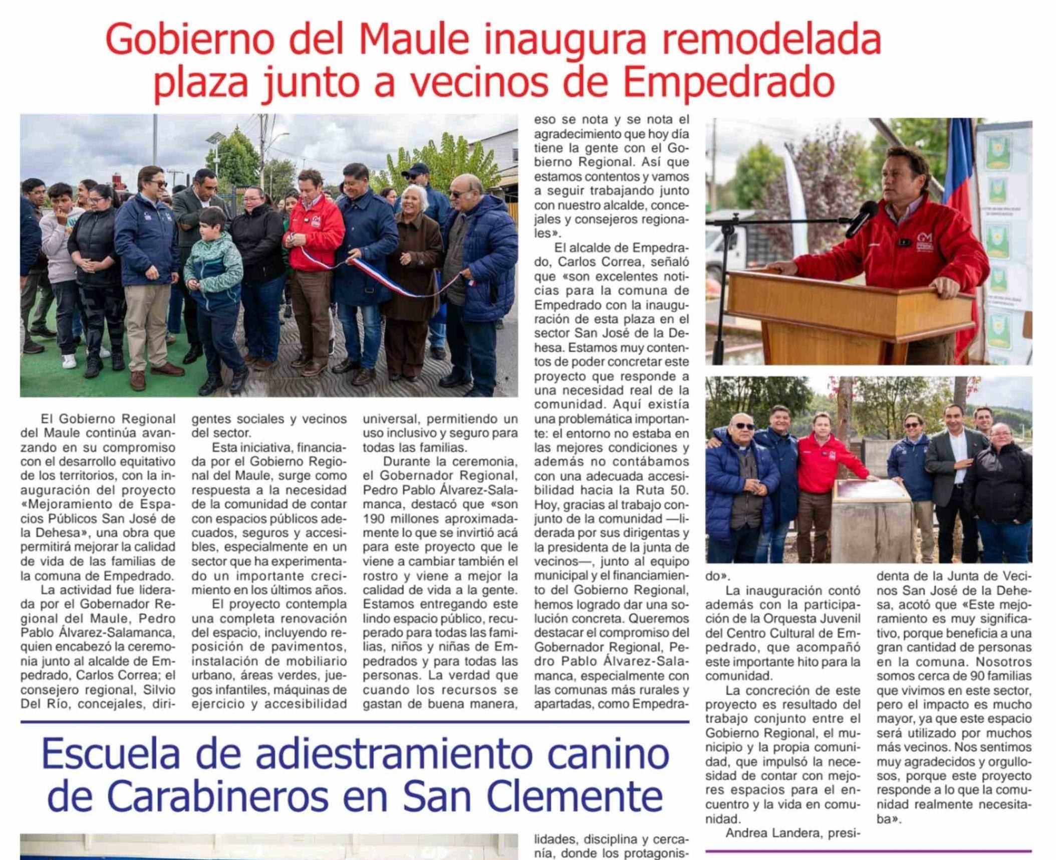 Gobierno del Maule inaugura remodelada plaza junto a vecinos de Empedrado