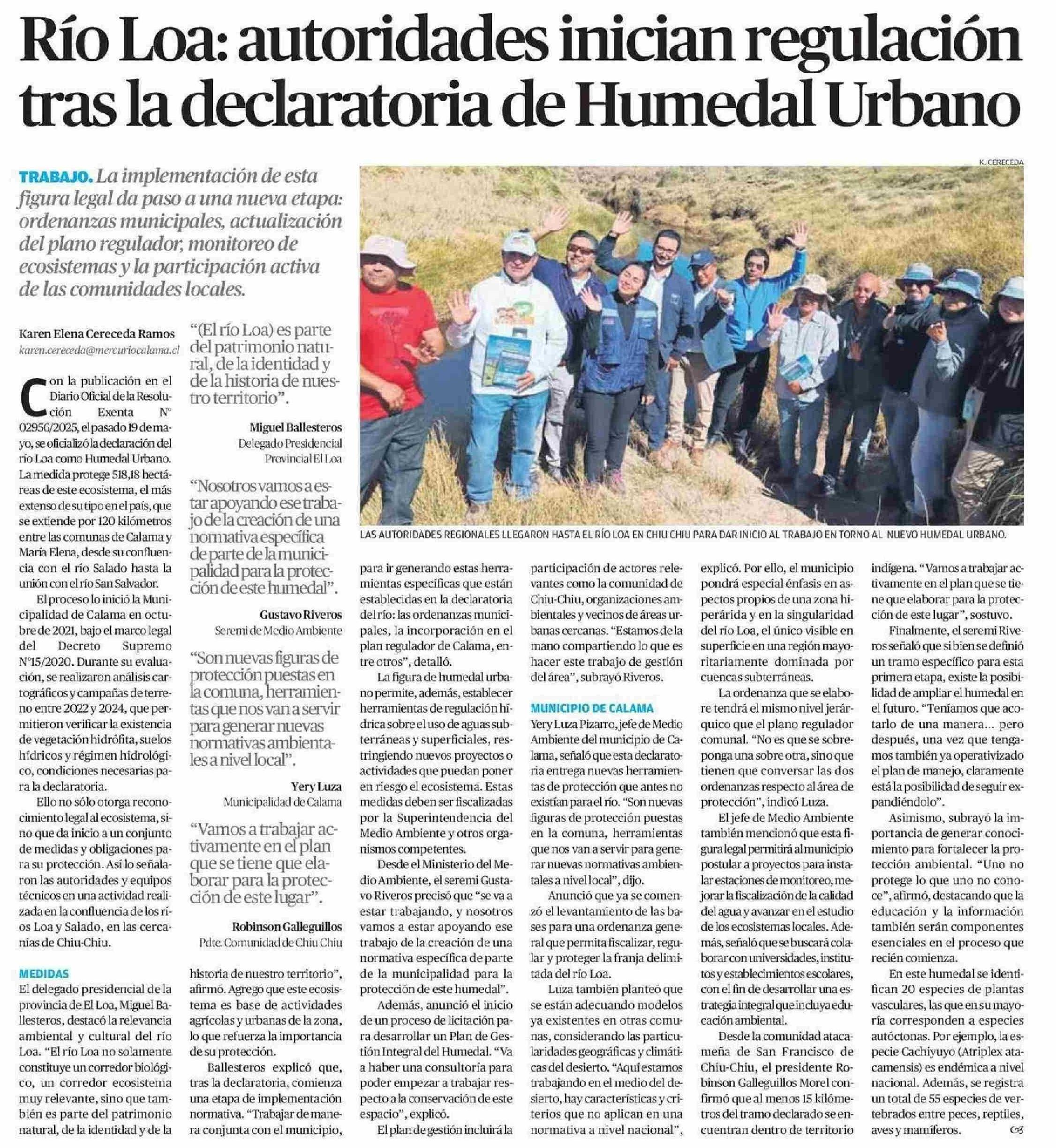 Río Loa: autoridades inician regulación tras la declaratoria de Humedal Urbano