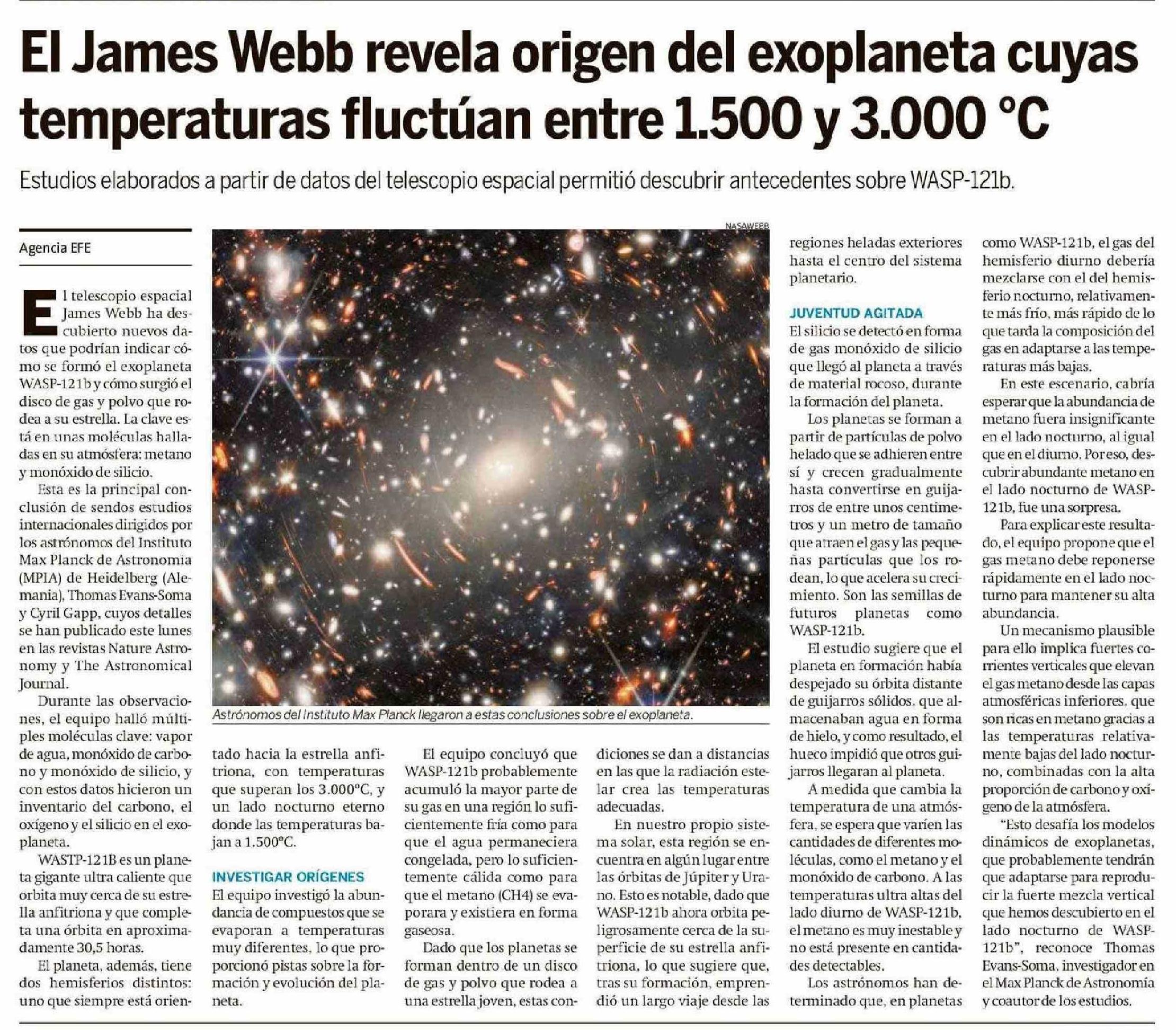 El James Webb revela origen del exoplaneta cuyas temperaturas fluctúan entre 1.500 y 3.000 *C