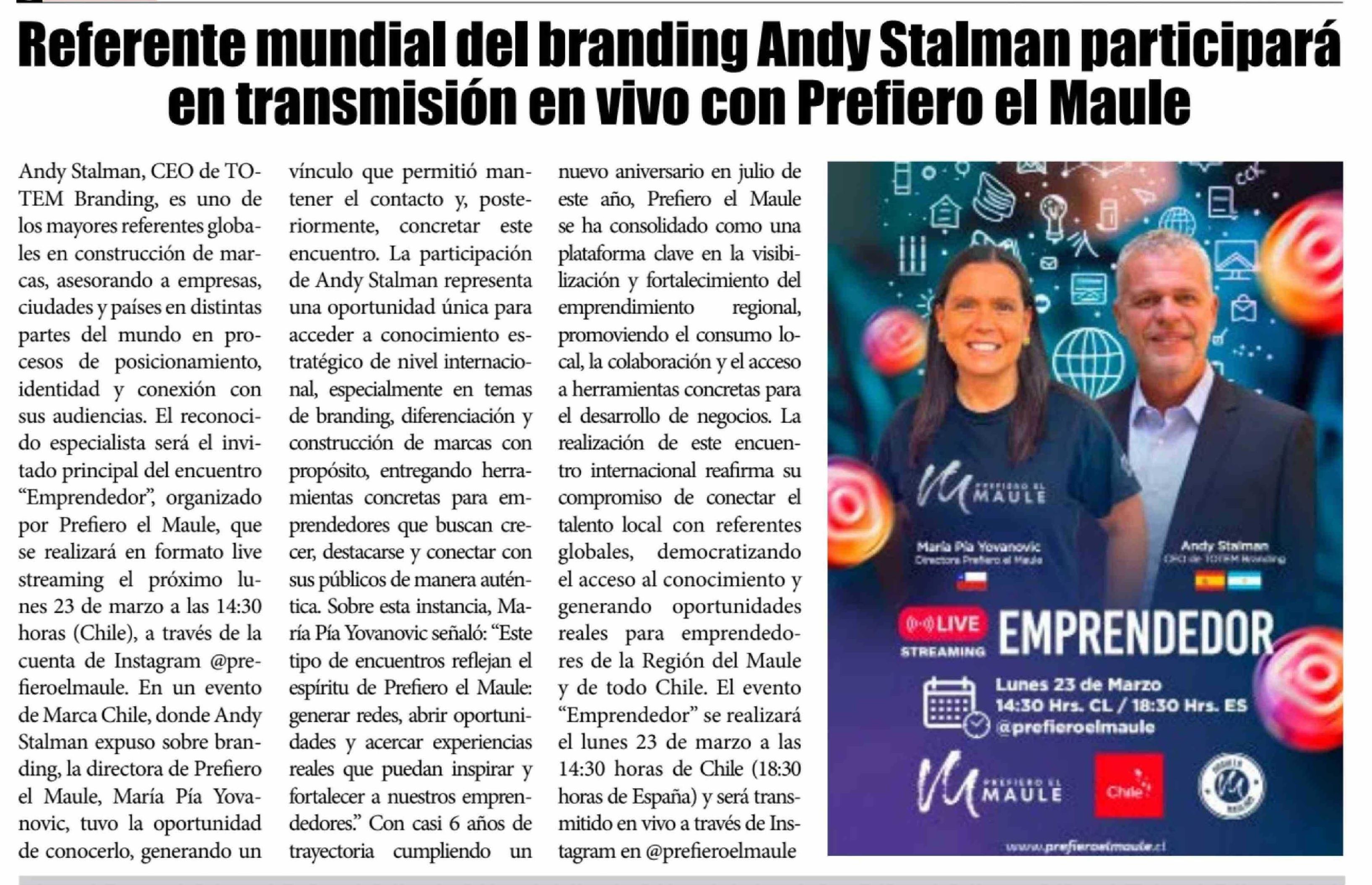 Referente mundial del branding Andy Stalman participará en transmisión en vivo con Prefiero el Maule