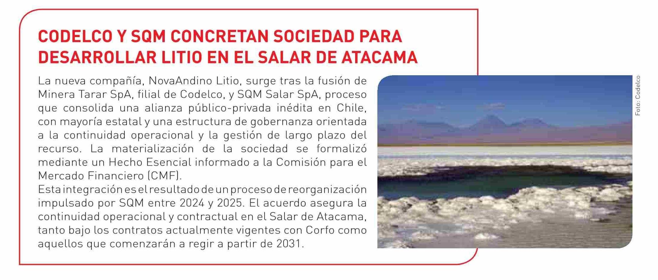 CODELCO Y SOM CONCRETAN SOCIEDAD PARA DESARROLLAR LITIO EN EL SALAR DE ATACAMA