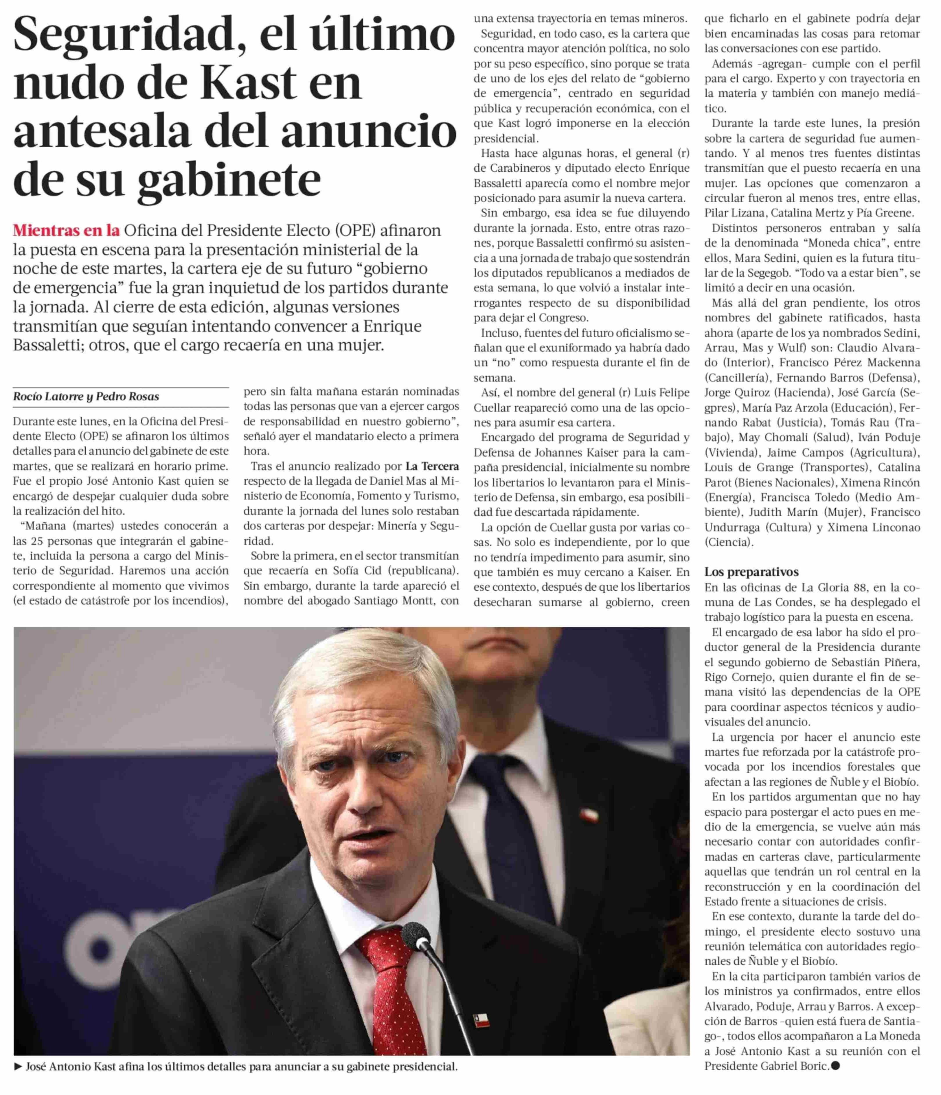 Seguridad, el último nudo de Kast en antesala del anuncio de su gabinete