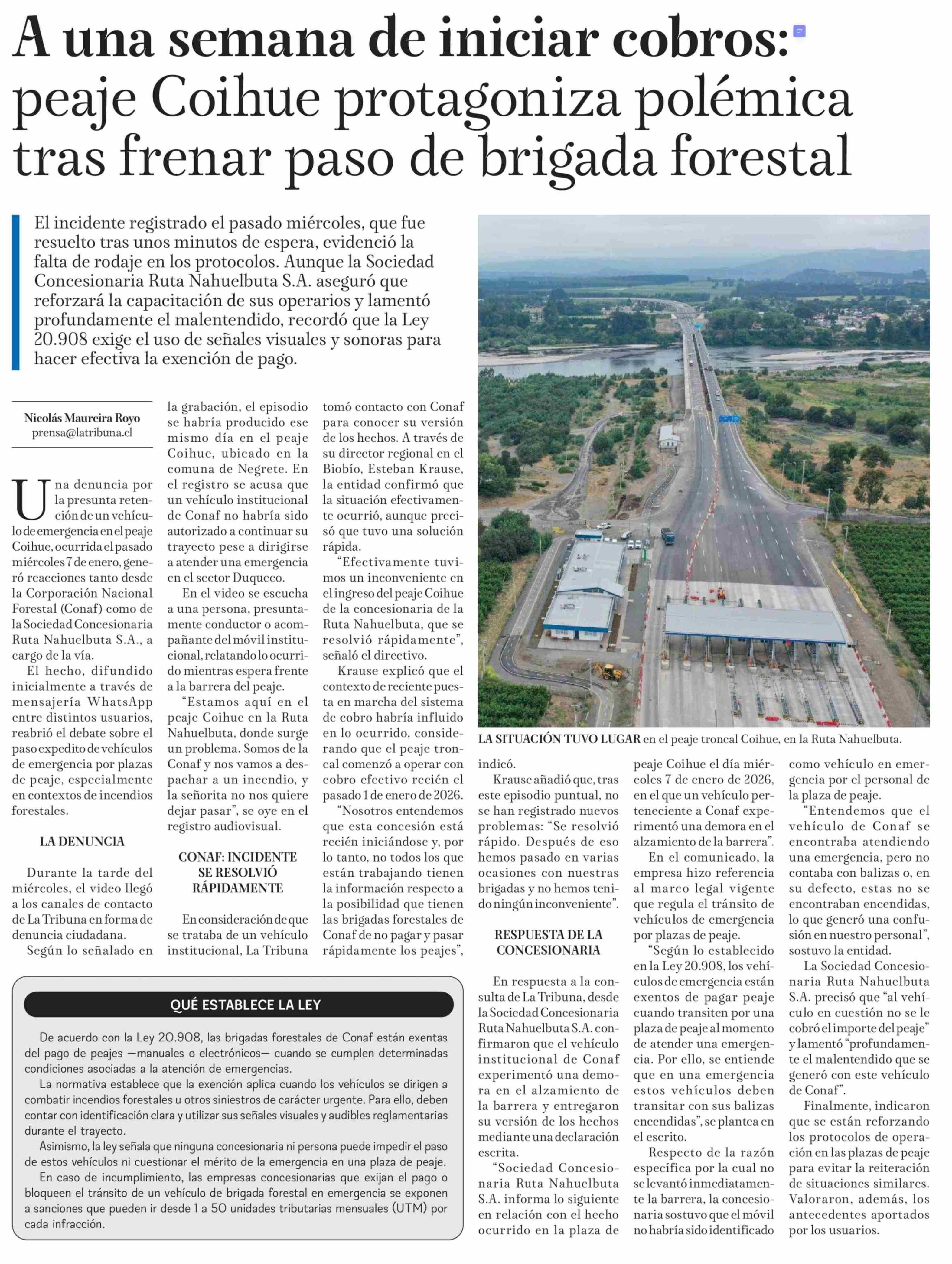 A una semana de iniciar cobros: peaje Coihue protagoniza polémica tras frenar paso de brigada forestal