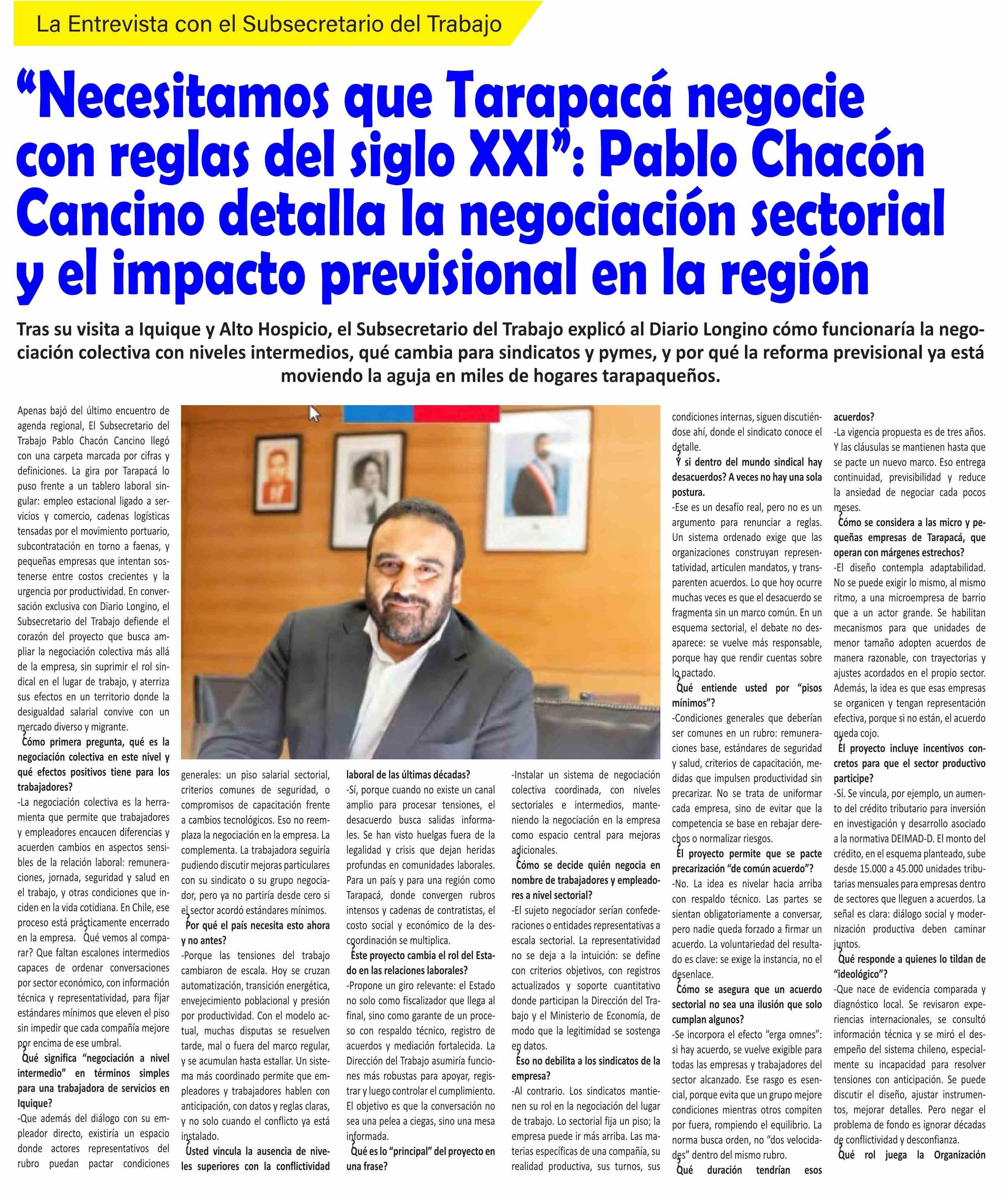 "Necesitamos que Tarapacá negocie con reglas del siglo XXI *: Pablo Chacón Cancino detalla la negociación sectorial y el impacto previsional en la región