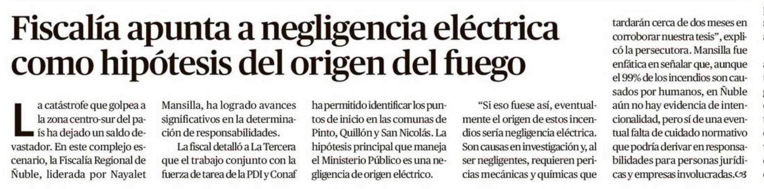 Fiscalía apunta a negligencia eléctrica como hipótesis del origen del fuego