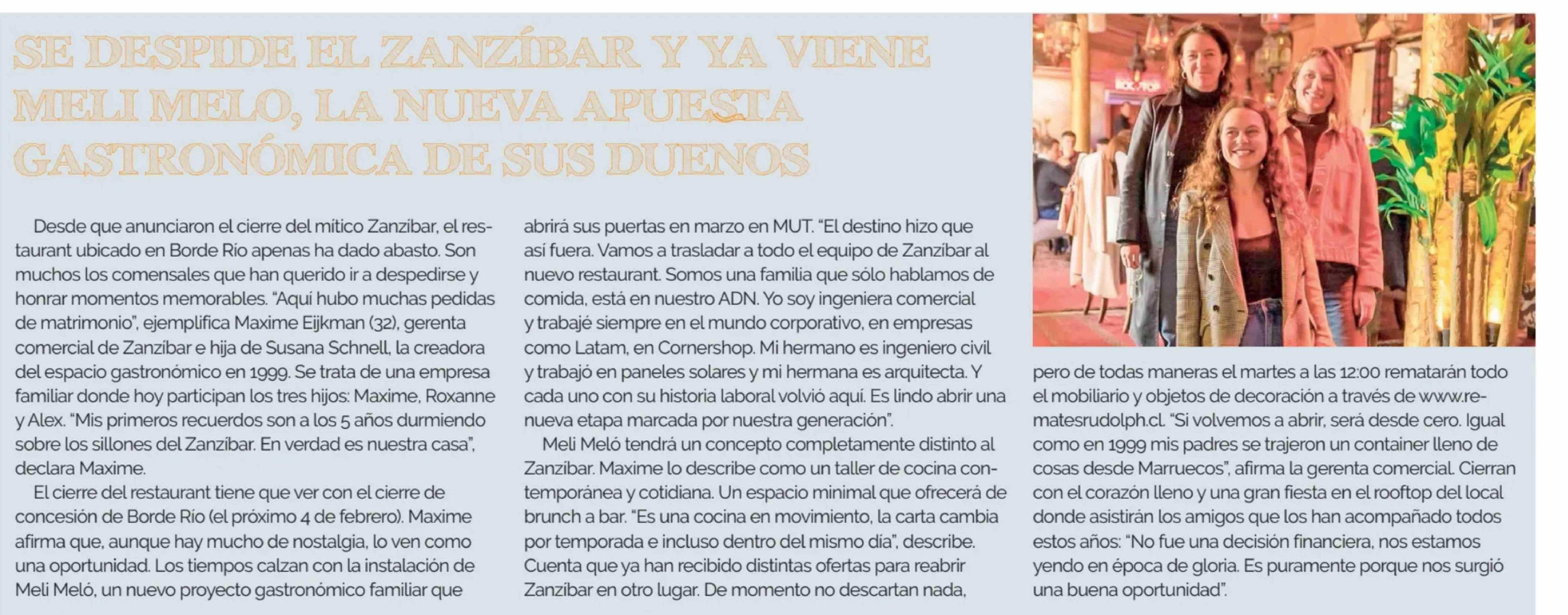 SE DESPIDE EL ZANZÍBAR Y YA VIENE MELI MELO, LA NUEVA APUESTA GASTRONÓMICA DE SUS DUENOS