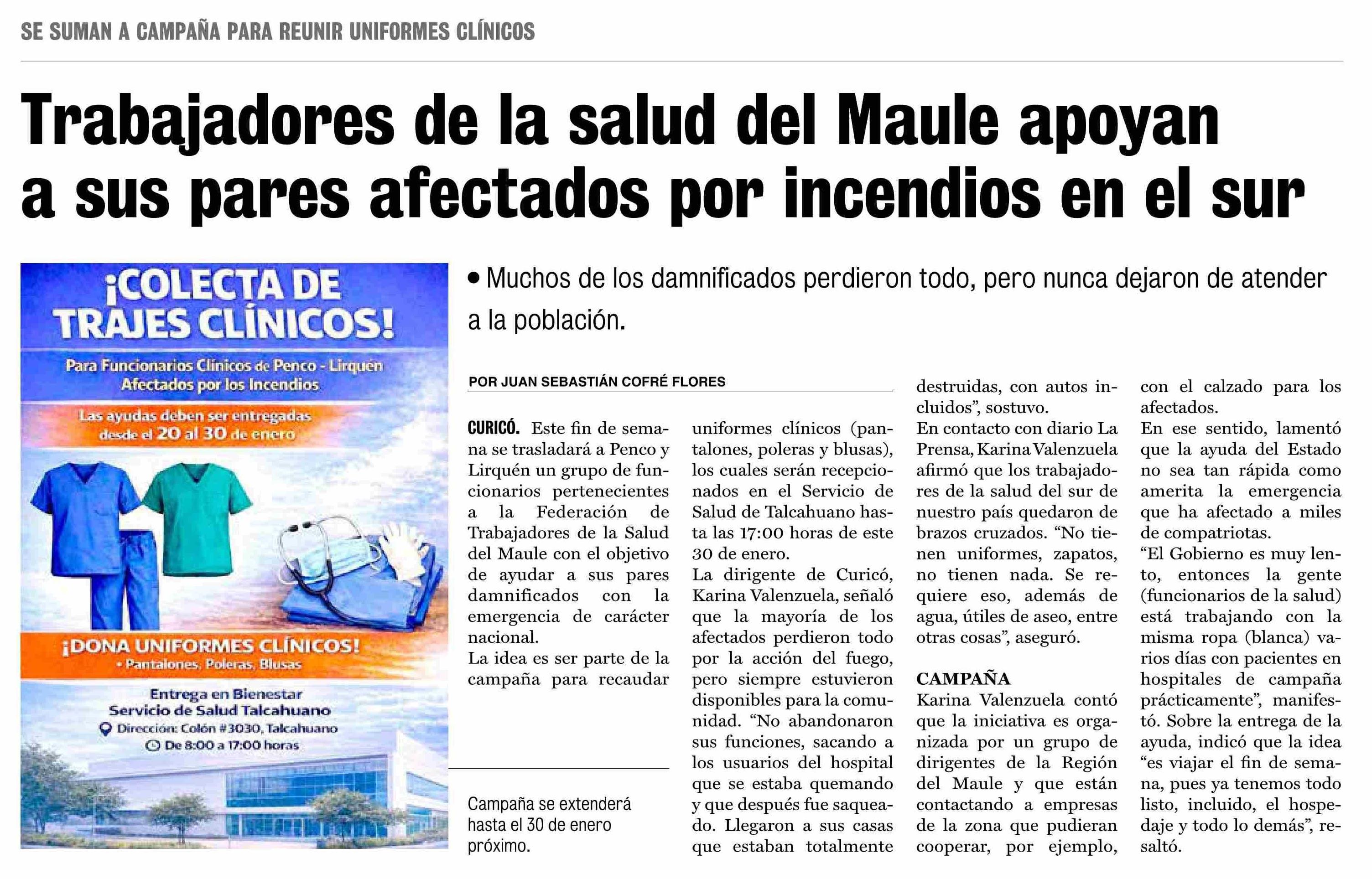 Trabajadores de la salud del Maule apoyan a sus pares afectados por incendios en el sur