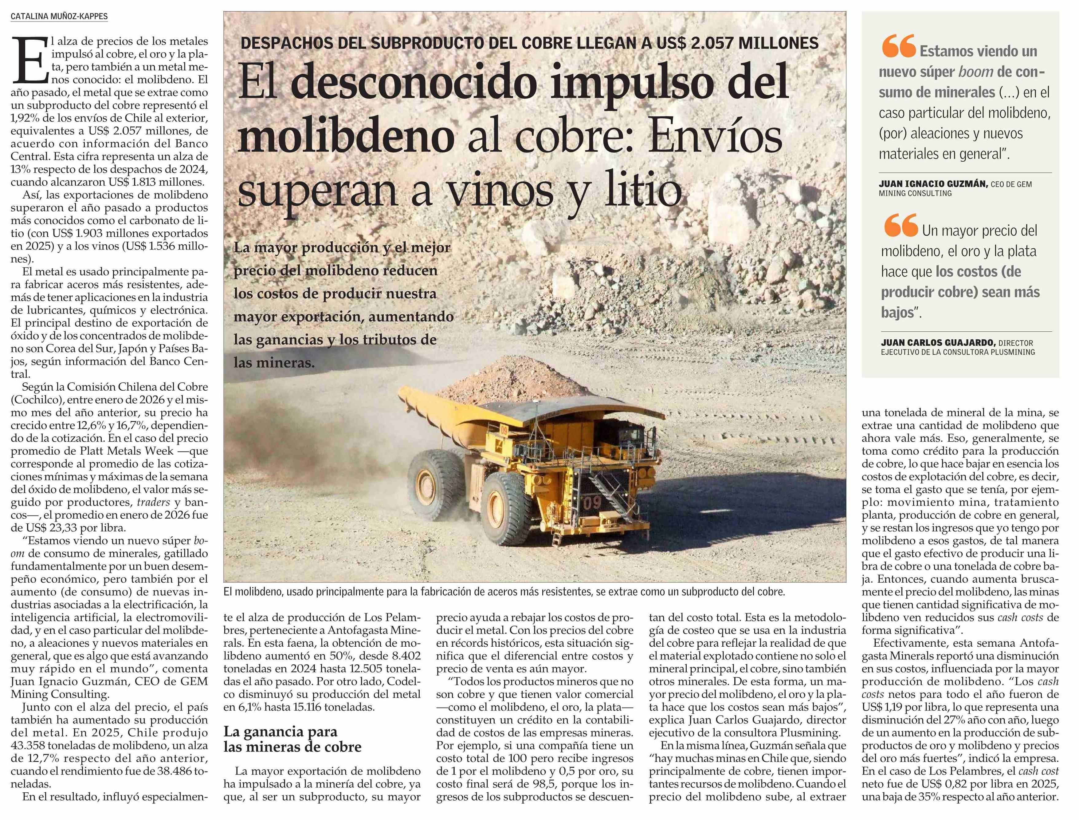 El desconocido impulso del molibdeno al cobre: Envíos superan a vinos y litio