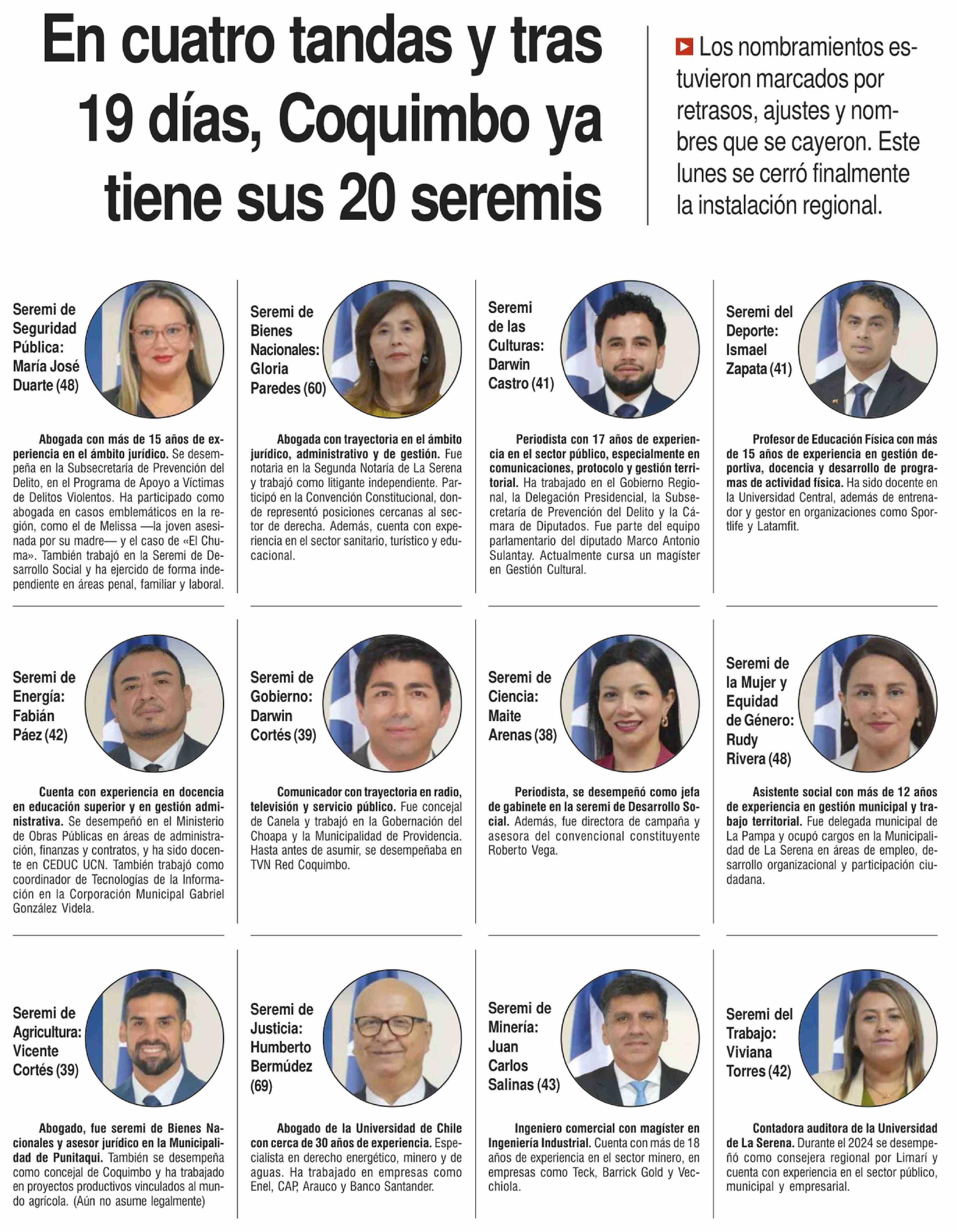 En cuatro tandas y tras 19 días, Coquimbo ya tiene sus 20 seremis