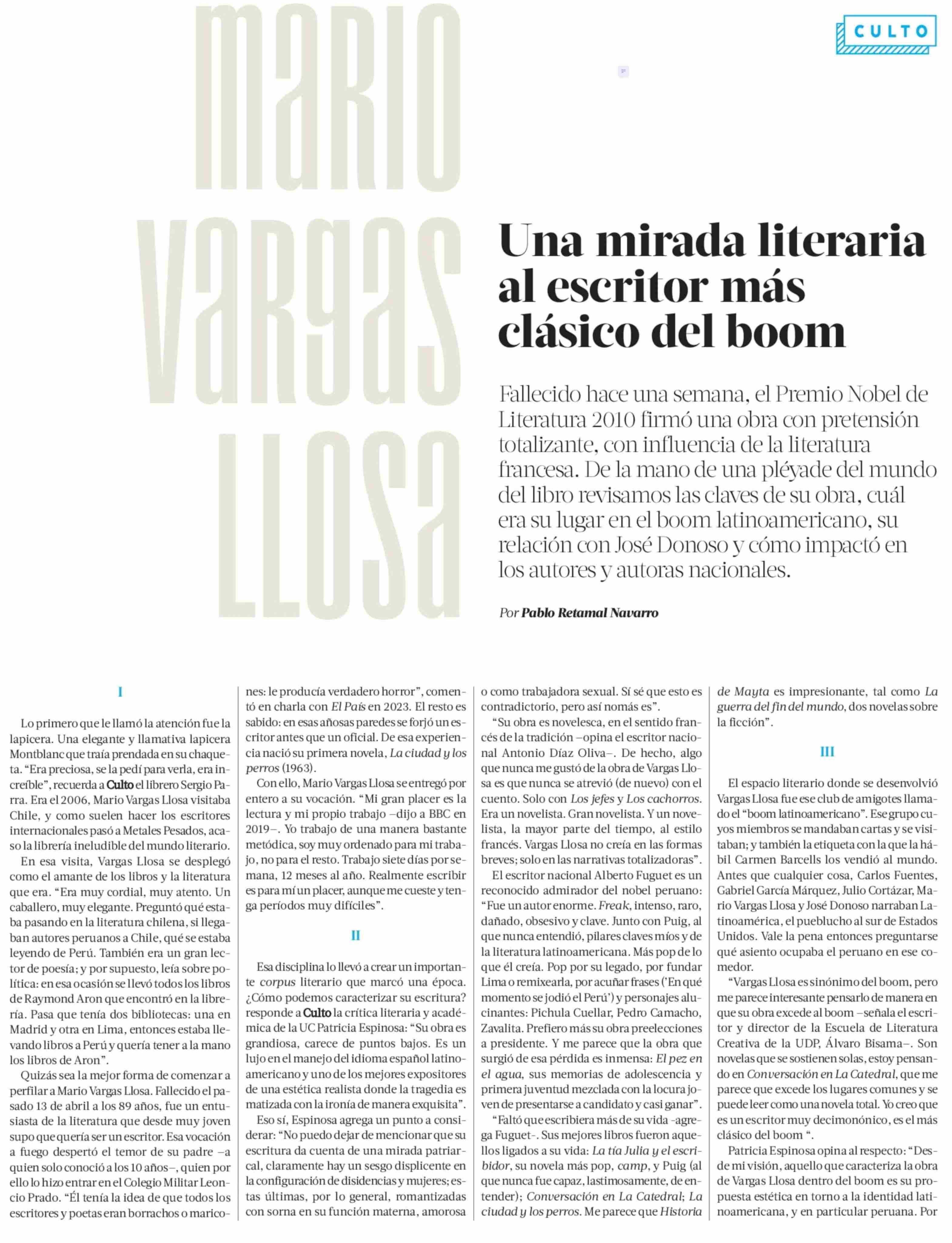 MARIO VARGAS LLOSA Una mirada literaria al escritor más clásico del boom