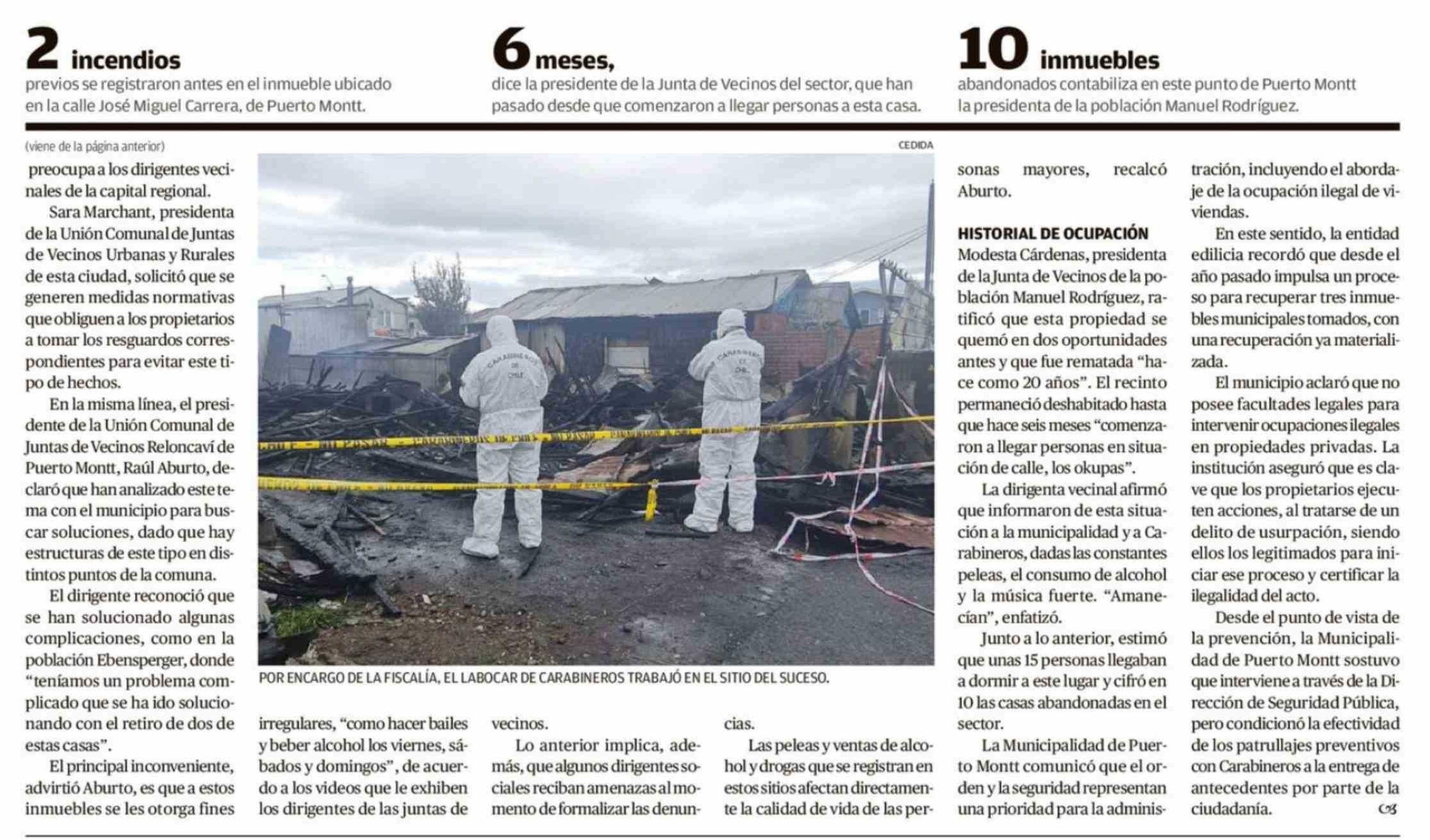 Dos muertos deja un incendio que destruyó casa okupa en la población Manuel Rodríguez