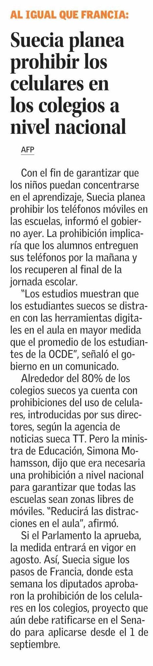 Suecia planea prohibir los celulares en los colegios a nivel nacional