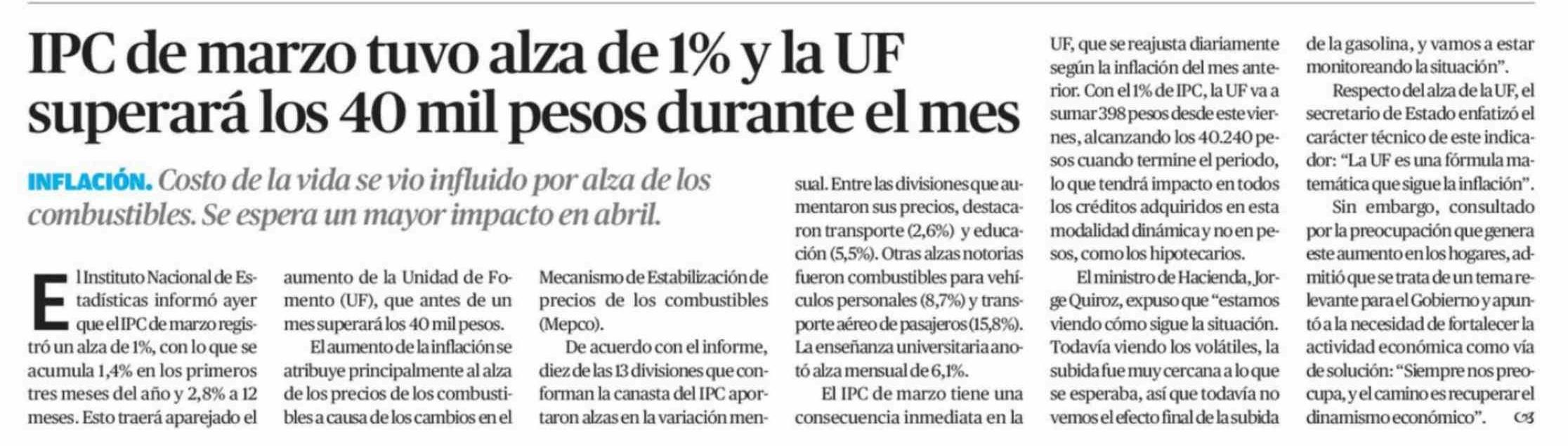 IPC de marzo tuvo alza de 1% y la UF superará los 40 mil pesos durante el mes