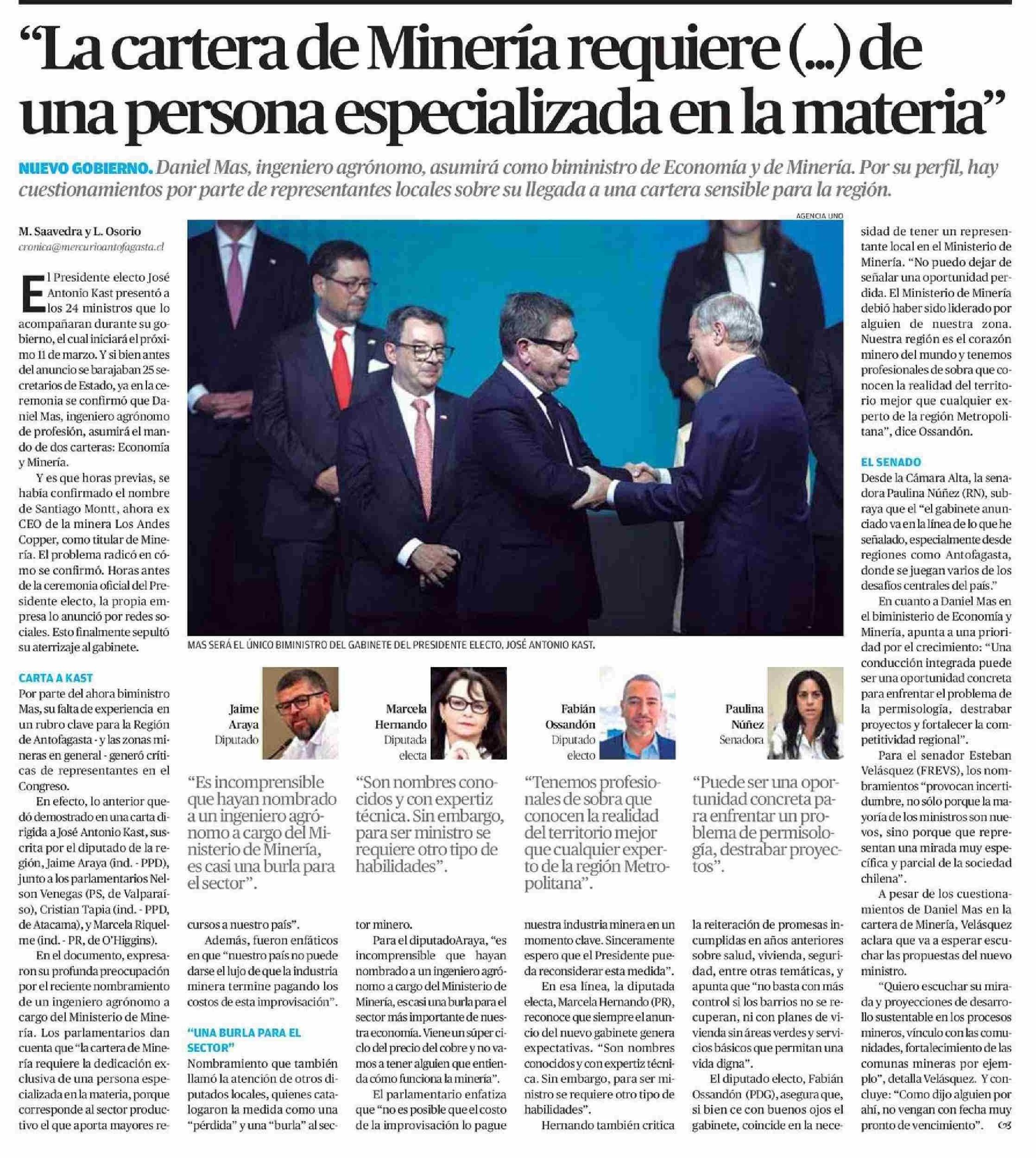 "La cartera de Minería requiere ( ... ) de una persona especializada en la materia"