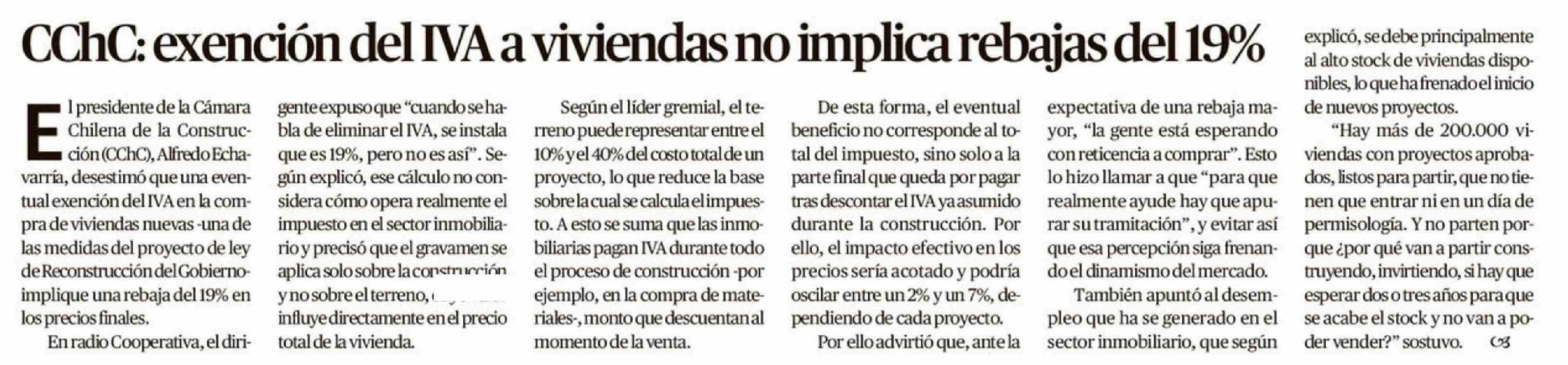 CChC: exención del IVA a viviendas no implica rebajas del 19%