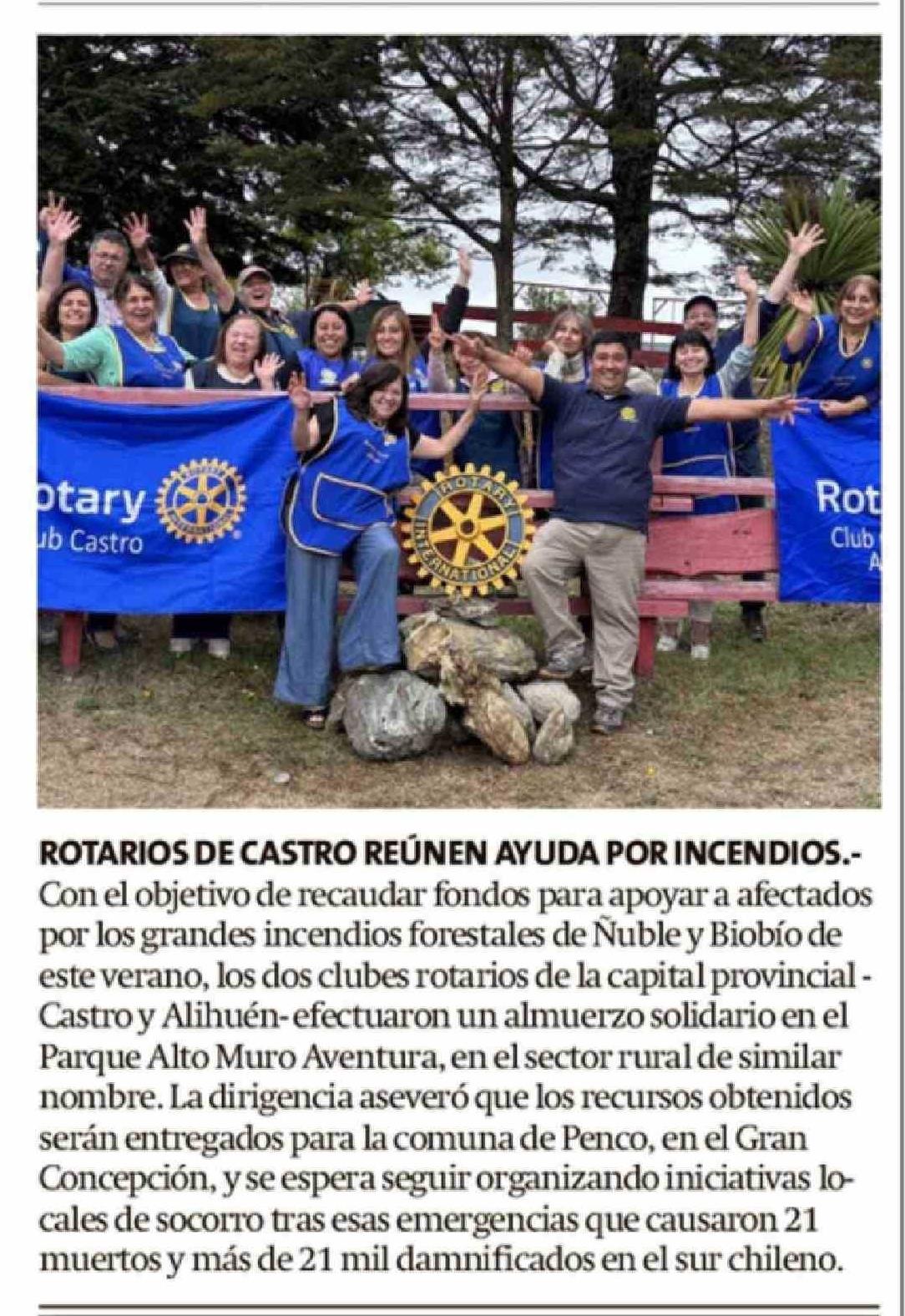 ROTARIOS DE CASTRO REÚNEN AYUDA POR INCENDIOS