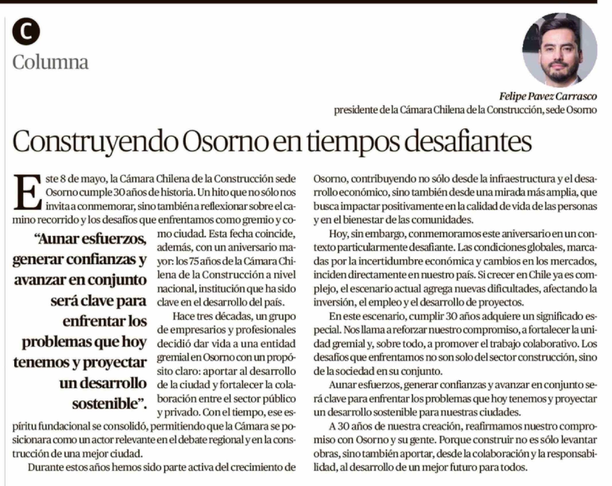 Columnas de Opinión: Construyendo Osorno en tiempos desafiantes
