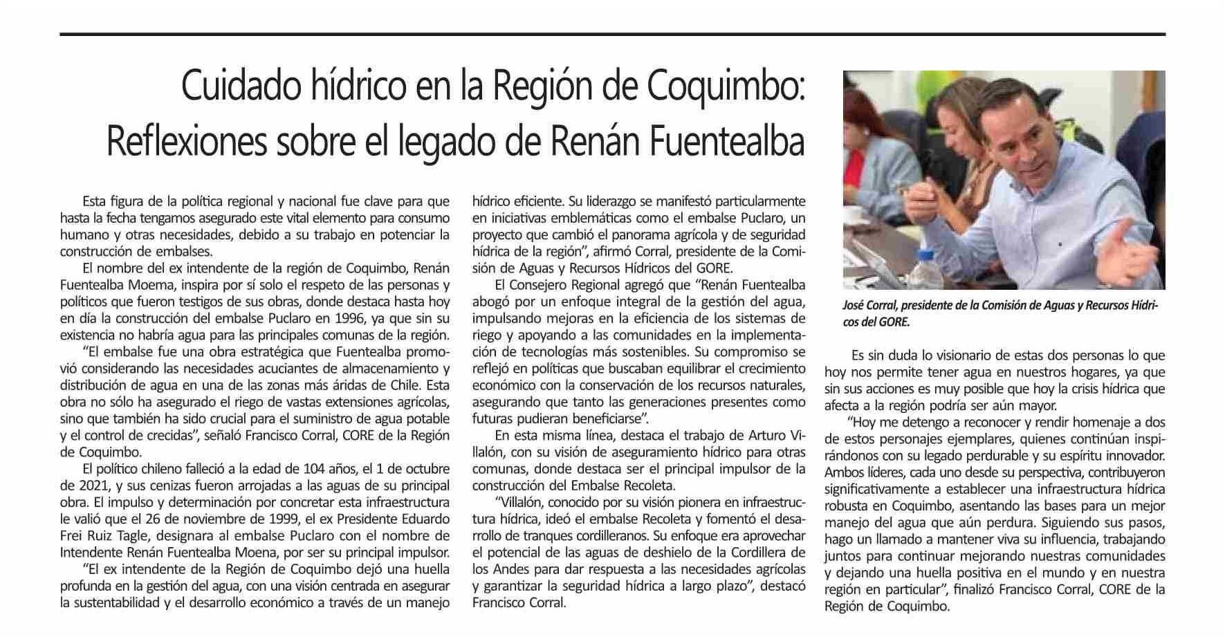 Cuidado hídrico en la Región de Coquimbo: Reflexiones sobre el legado de Renán Fuentealba
