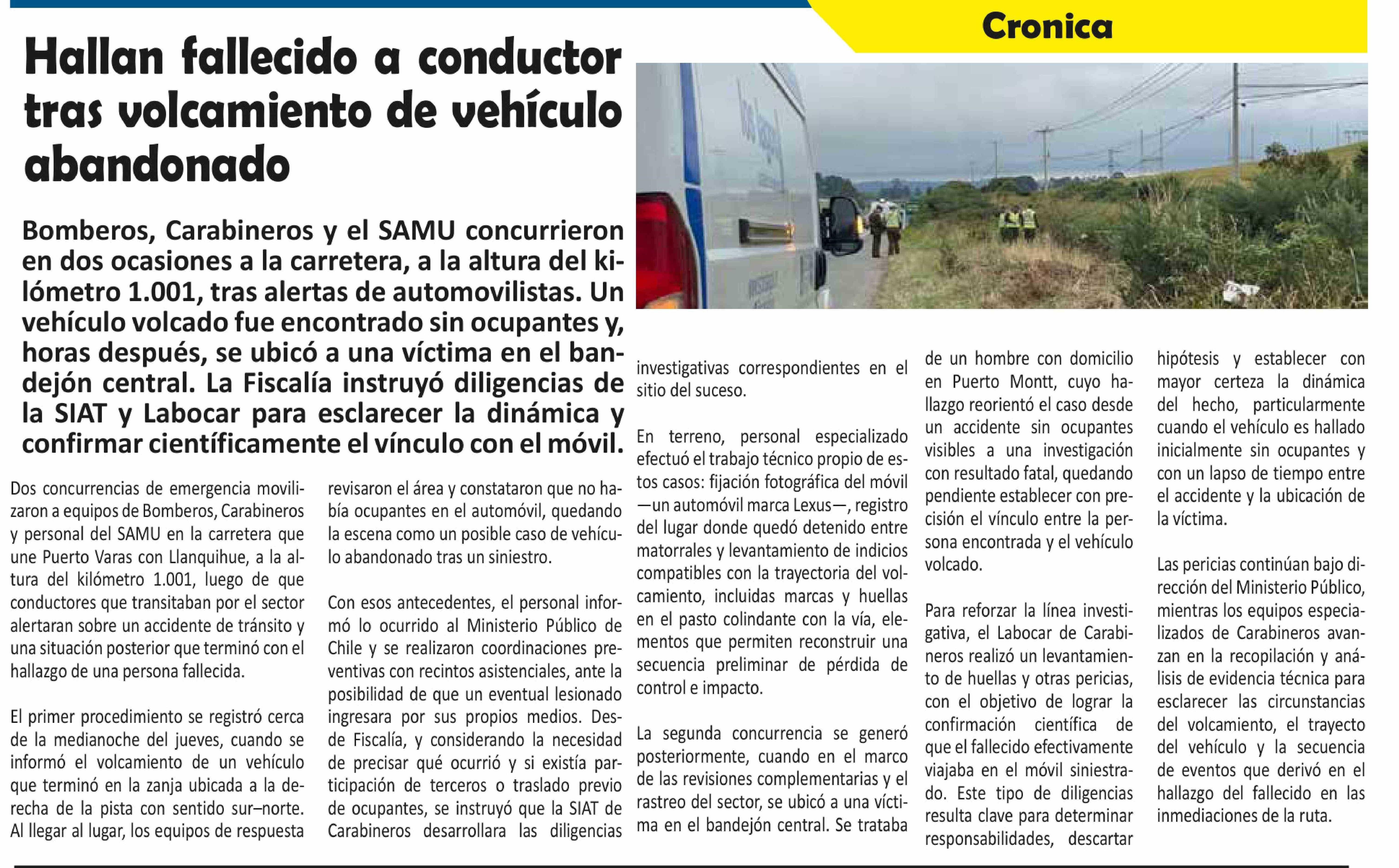 Hallan fallecido a conductor tras volcamiento de vehículo abandonado