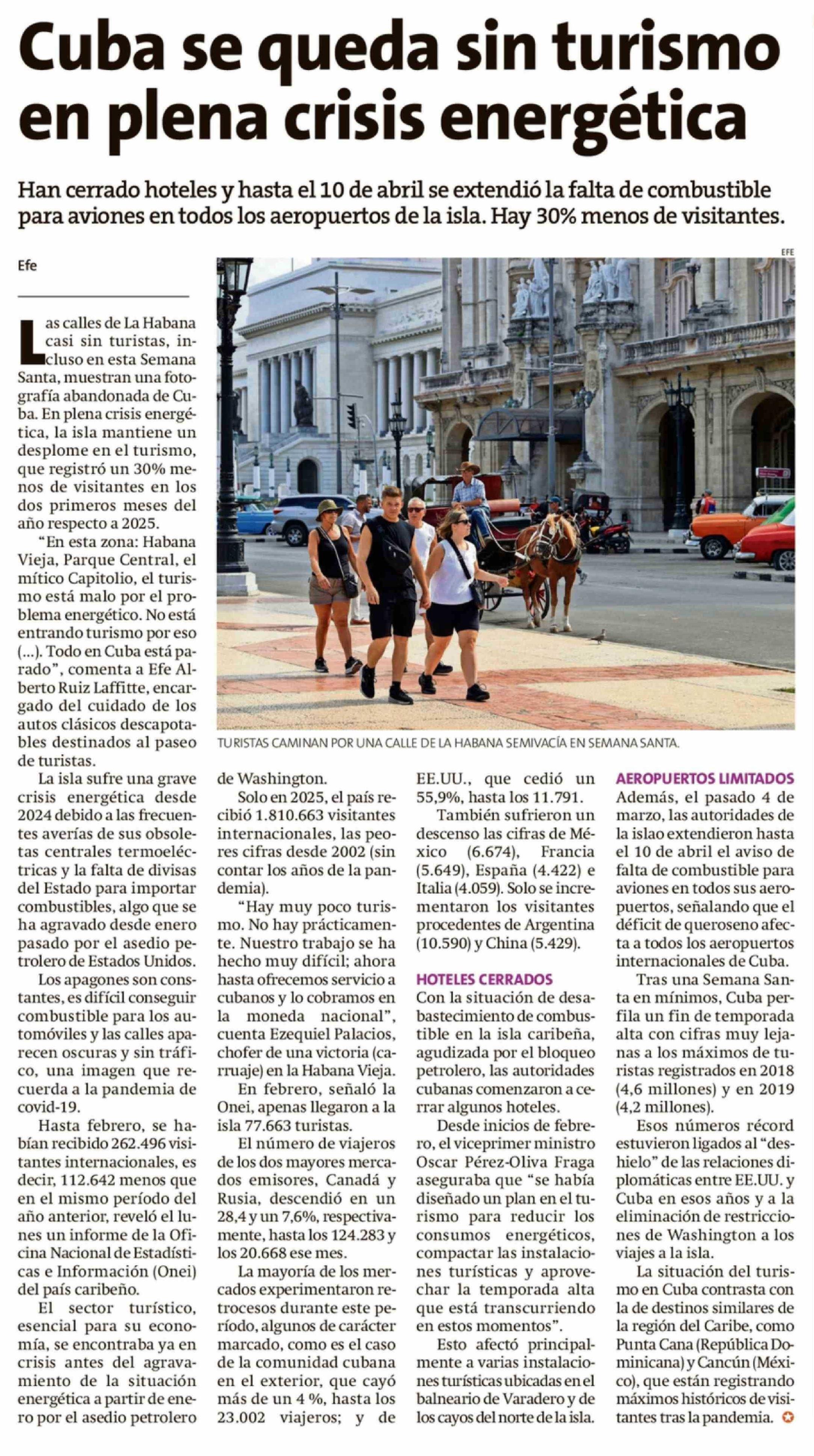 Cuba se queda sin turismo en plena crisis energética