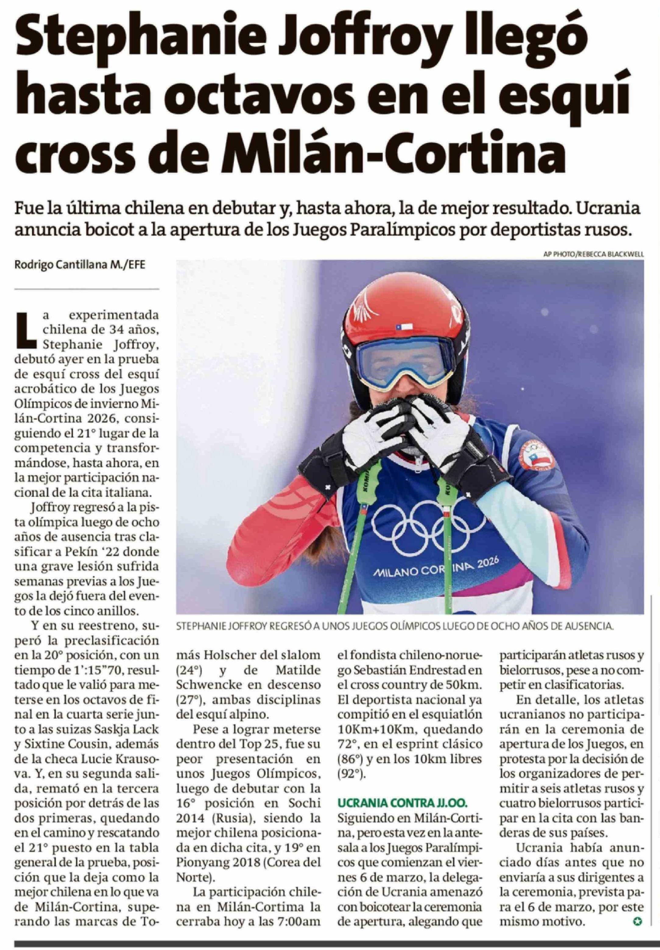 Stephanie Joffroy llego hasta octavos en el esquí cross de Milán-Cortina