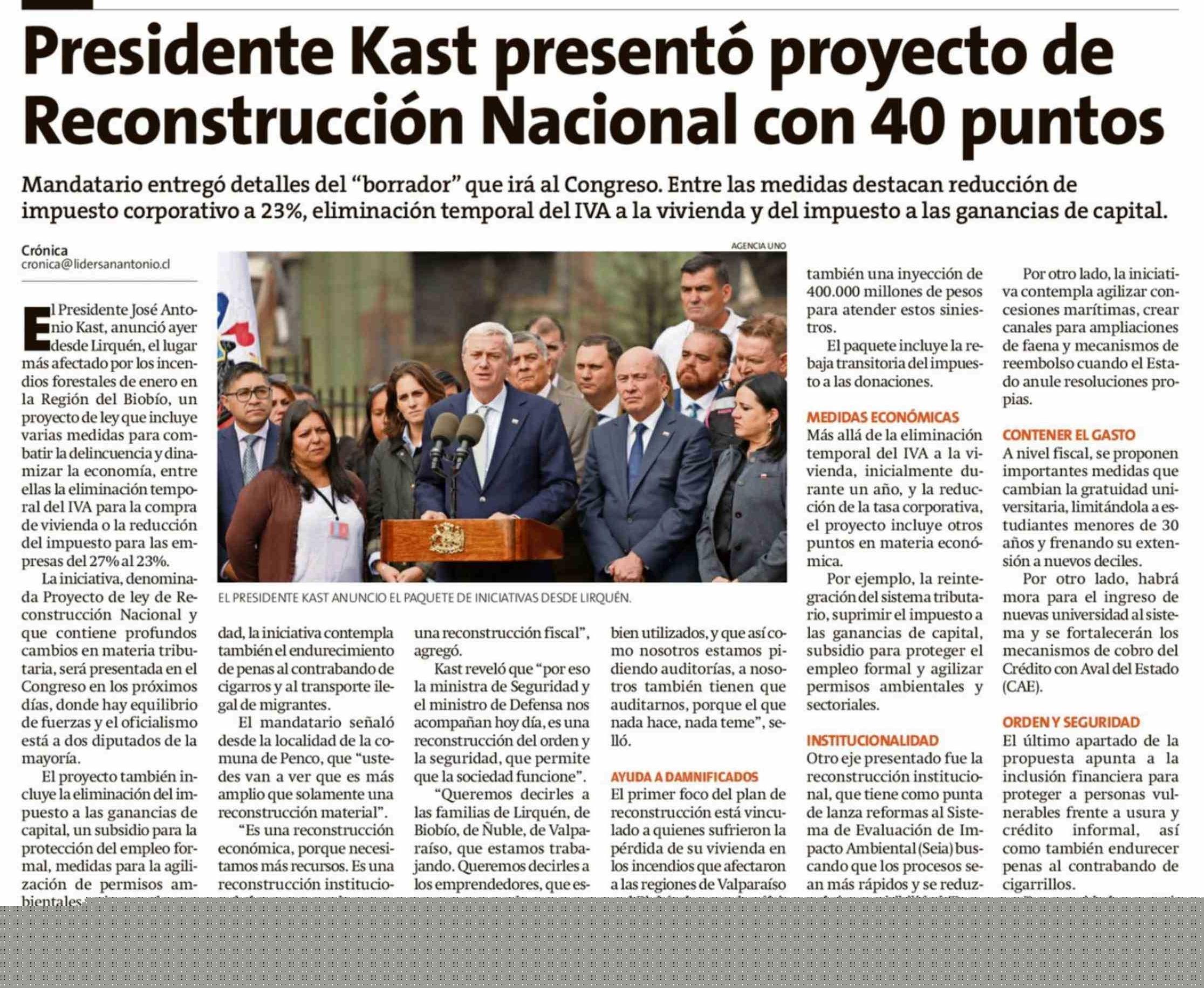 Título: Presidente Kast presentó proyecto de Reconstrucción Nacional con 40 puntos