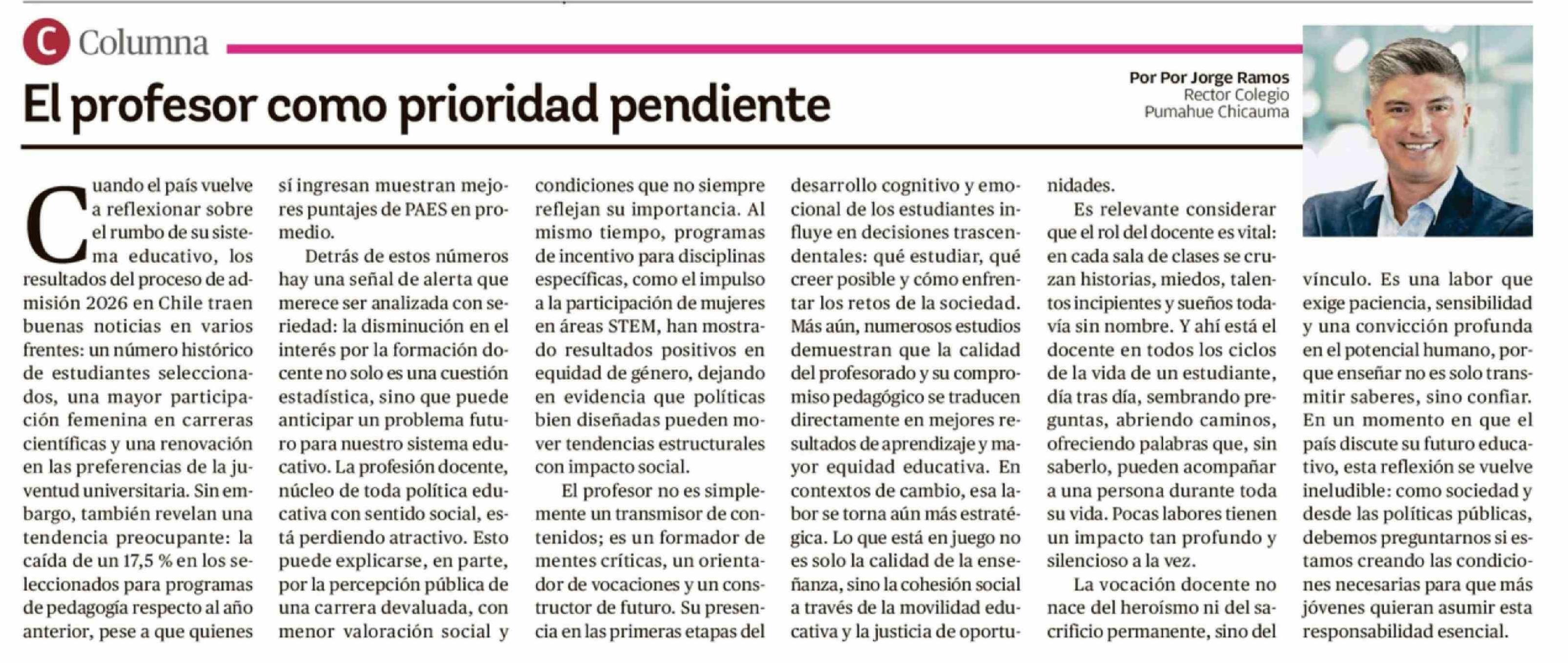 Columnas de Opinión: El profesor como prioridad pendiente