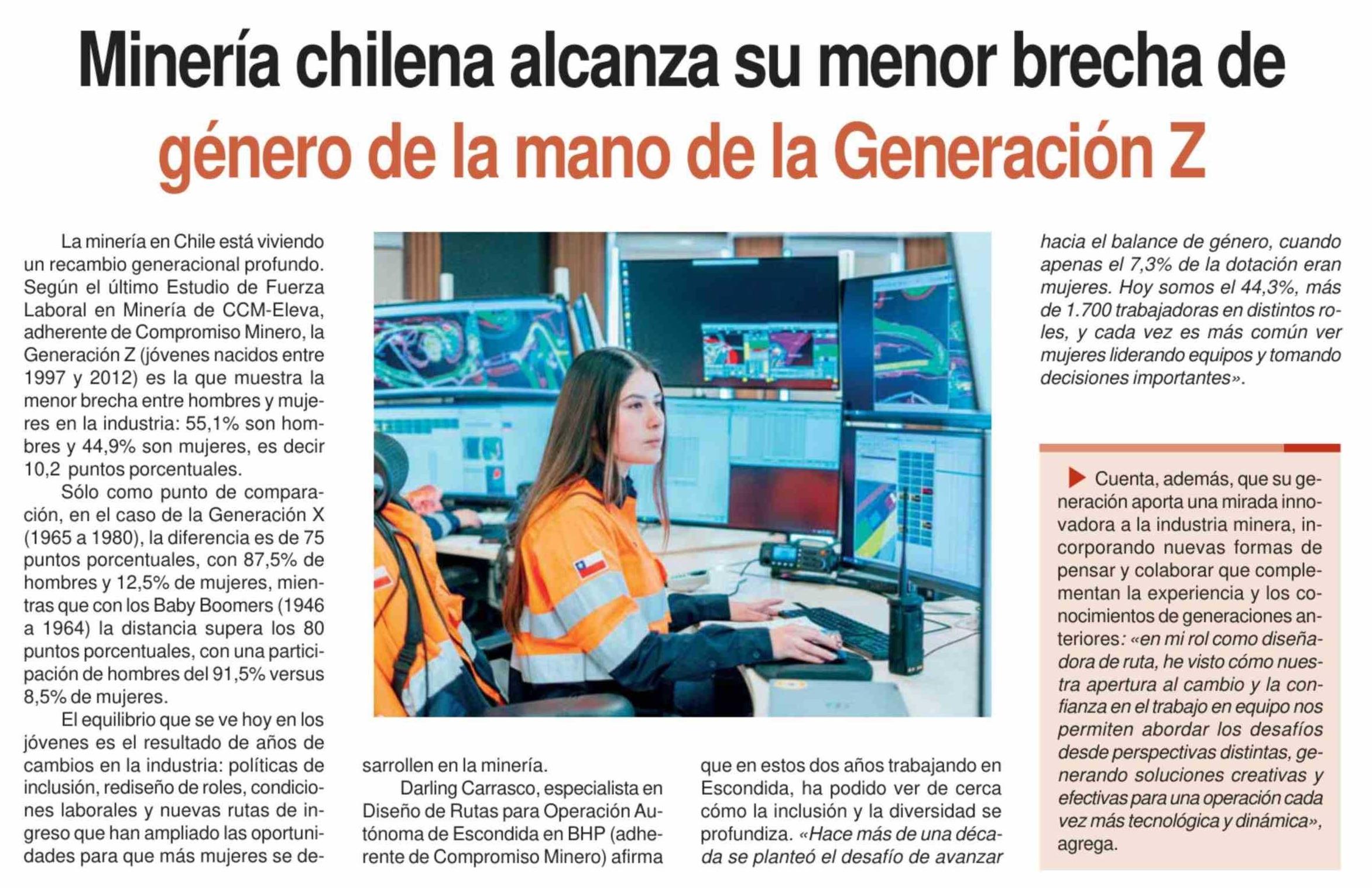 Título: Minería chilena alcanza su menor brecha de género de la mano de la Generación Z