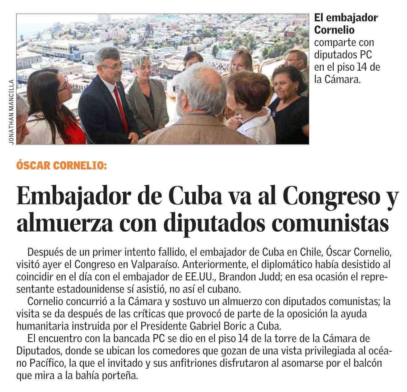 Embajador de Cuba va al Congreso y almuerza con diputados comunistas