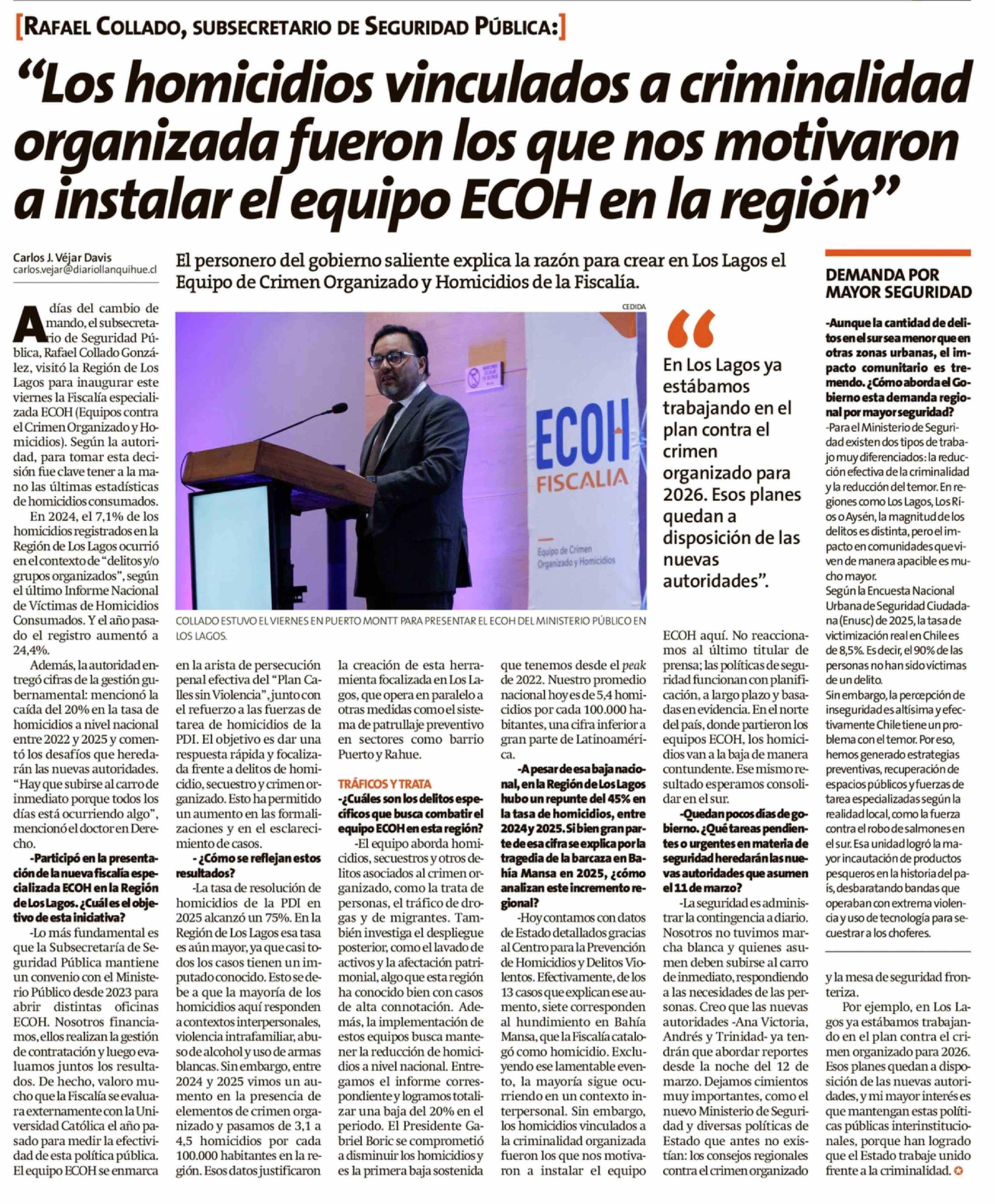 "Los homicidios vinculados a criminalidad organizada fueron los que nos motivaron a instalar el equipo ECOH en la región"