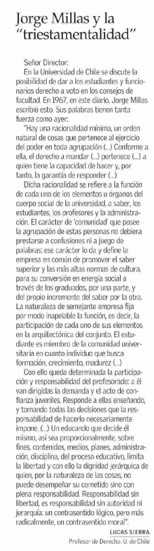 CARTAS: Jorge Millas y la “triestamentalidad”