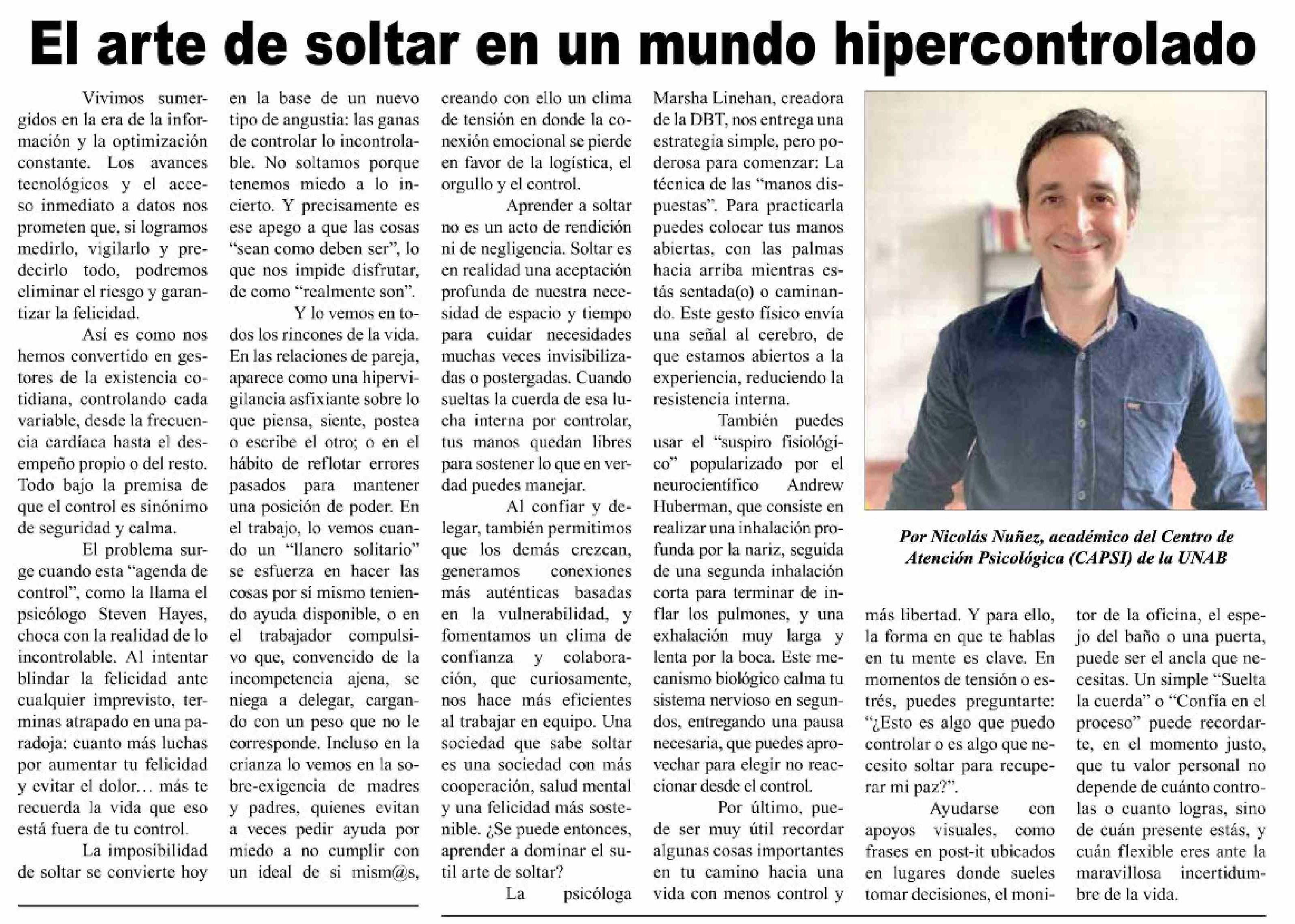 Columnas de Opinión: El arte de soltar en un mundo hipercontrolado