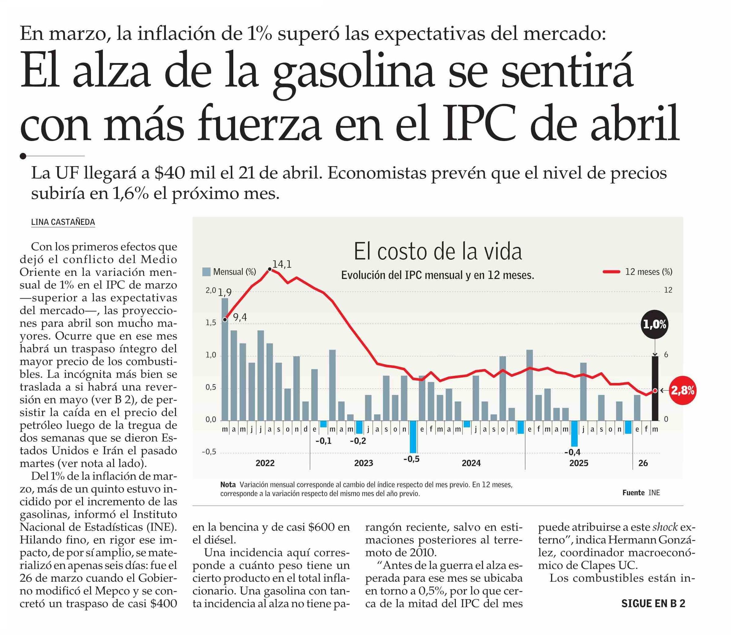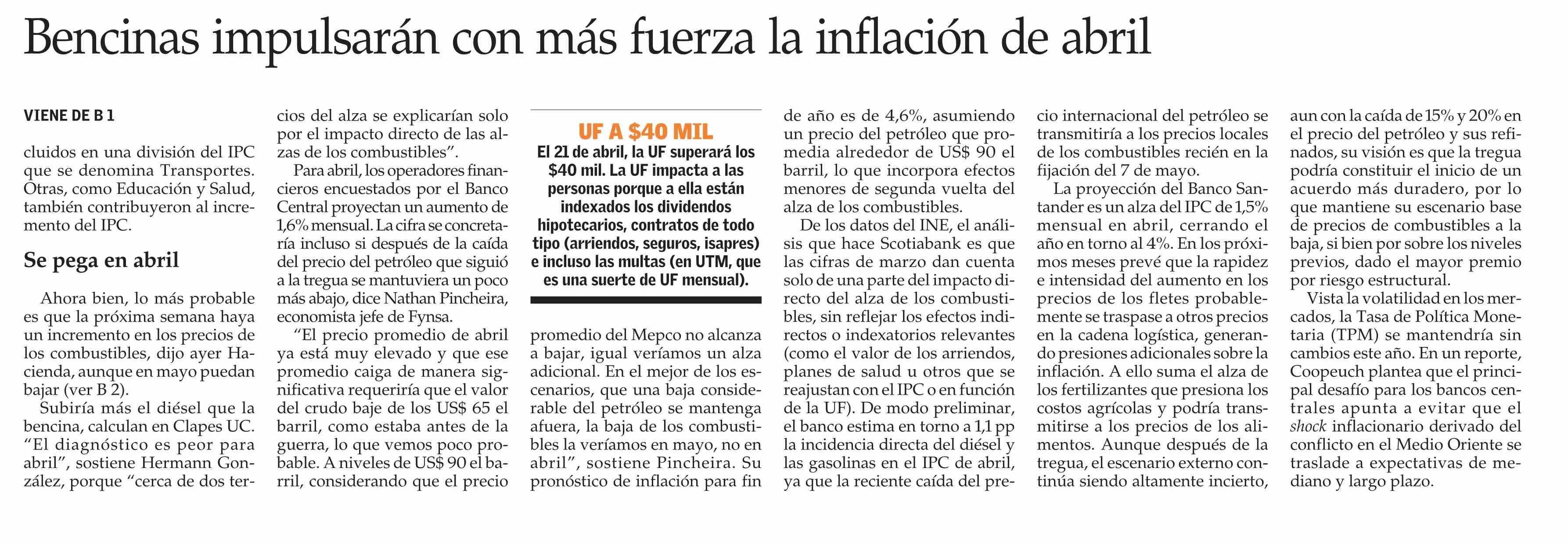Título: El alza de la gasolina se sentirá con más fuerza en el IPC de abril