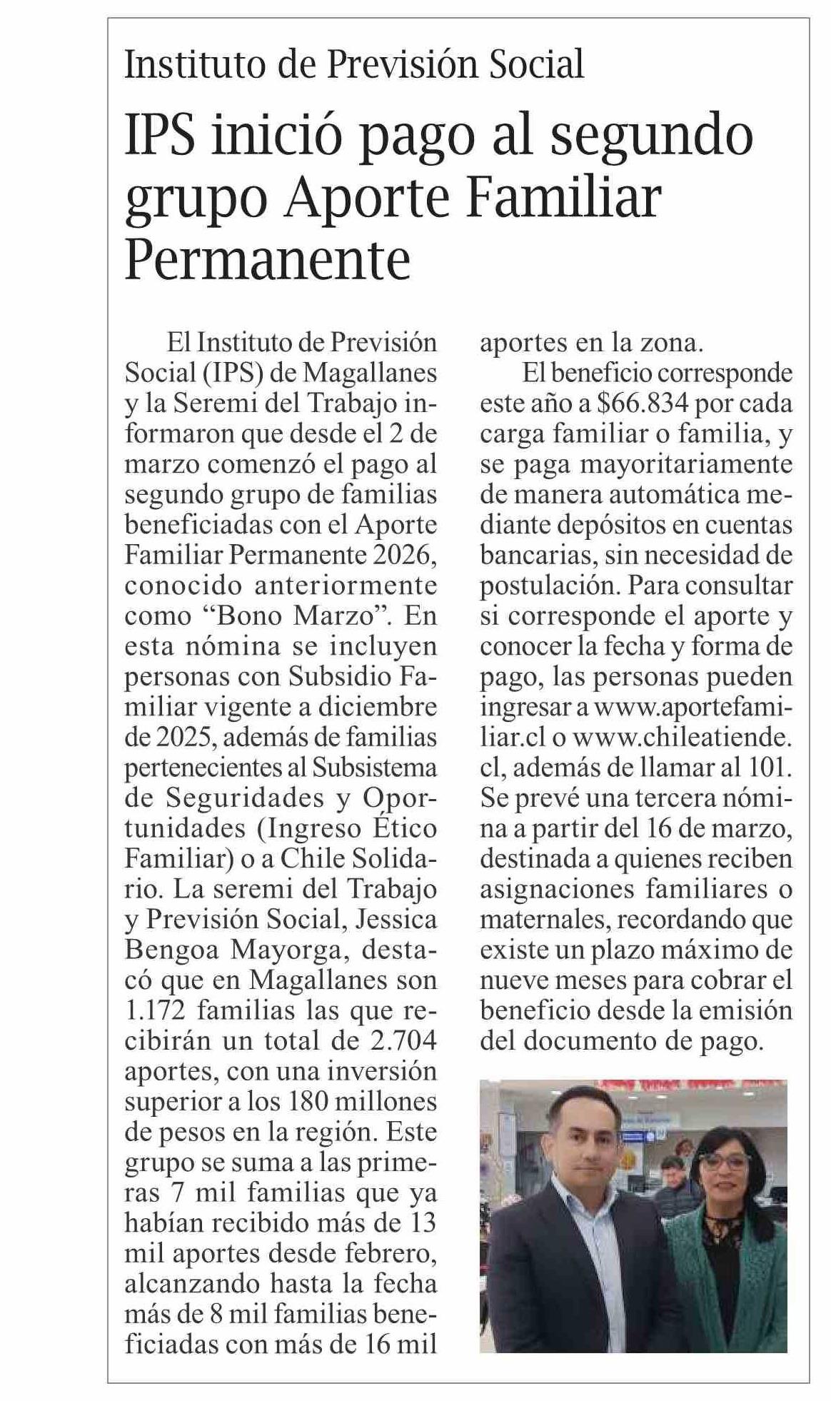 inició pago al segundo grupo Aporte Familiar Permanente