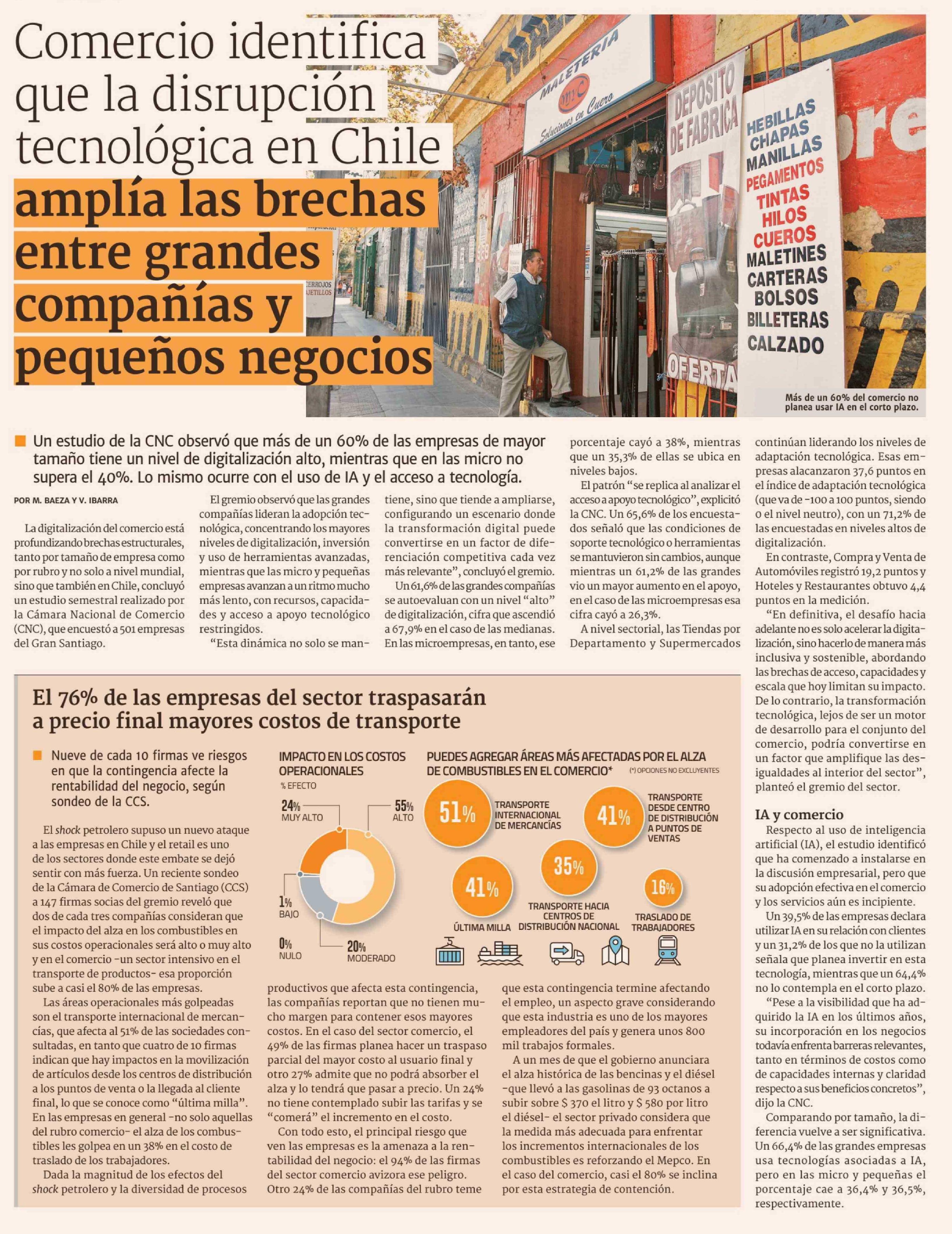 Comercio identifica que la disrupción tecnológica en Chile amplía las brechas entre grandes compañías y pequeños negocios