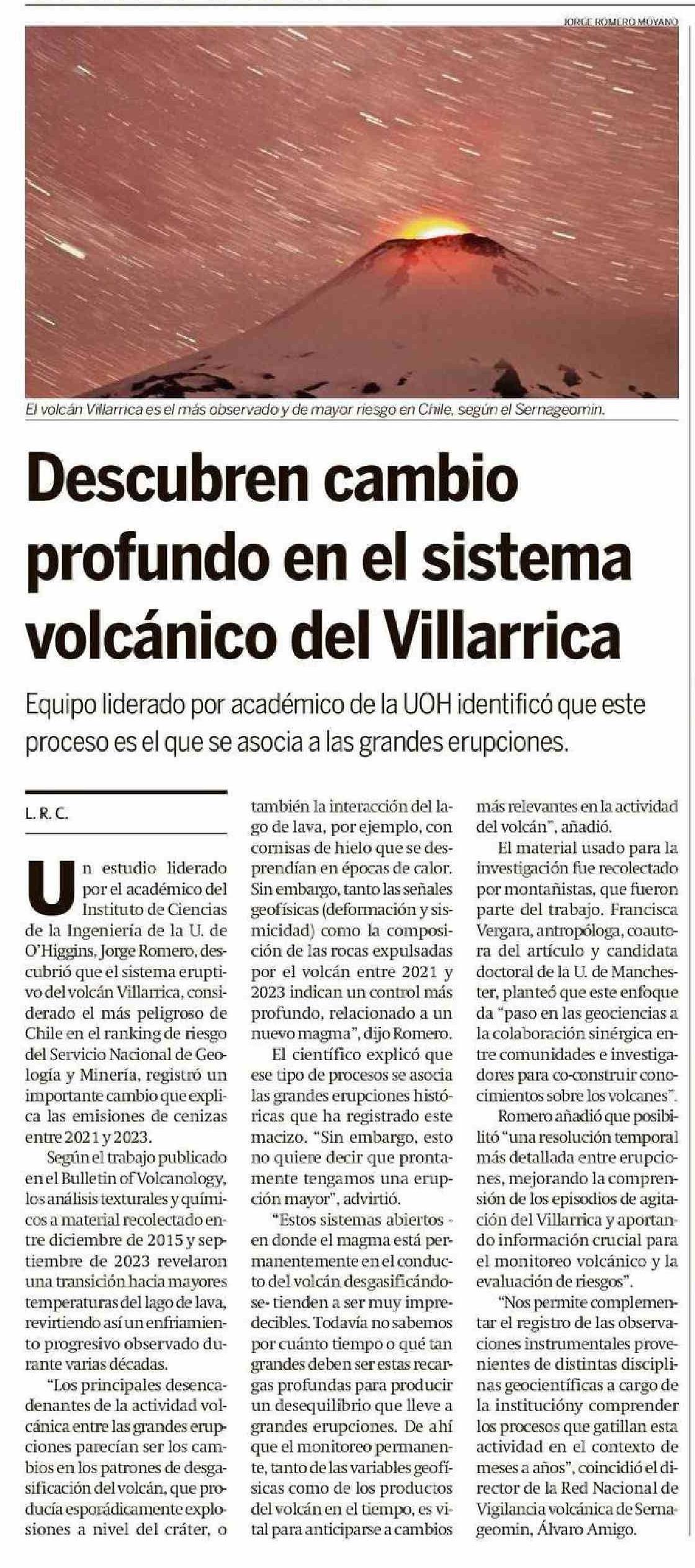 Descubren cambio profundo en el sistema volcánico del Villarrica